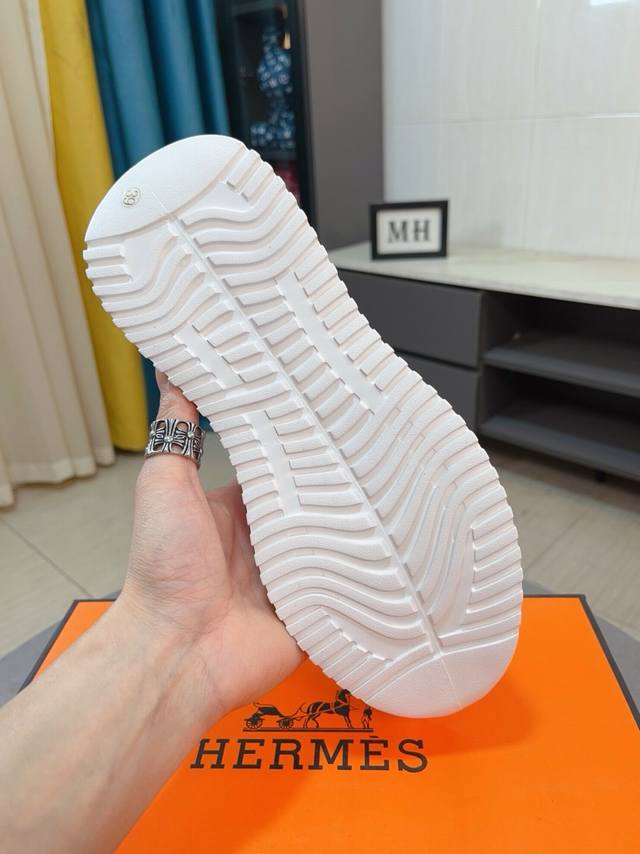 H爱马仕运动鞋,鞋面小牛皮和网布拼接打造,进口材质,质感十足,轻盈鞋底装饰撞色图案,打造百搭时尚风格。 Size:38-45