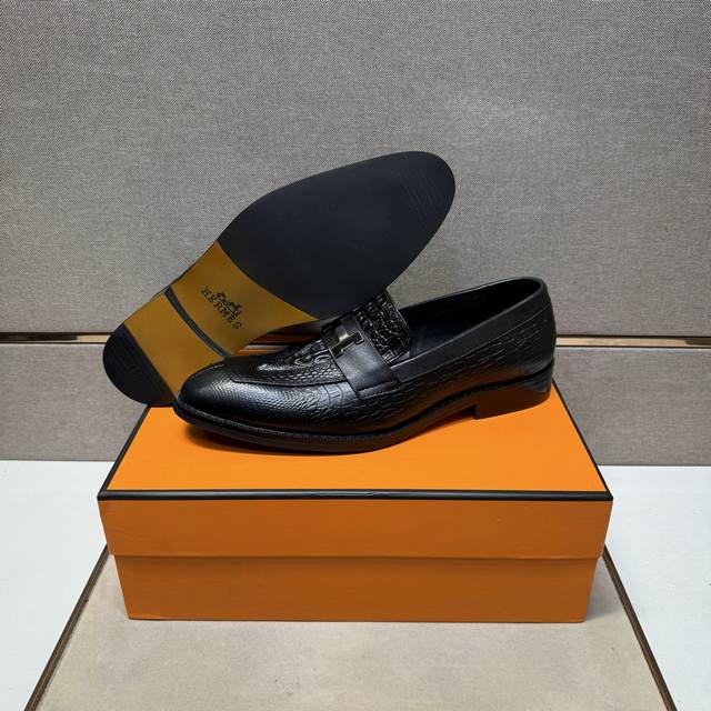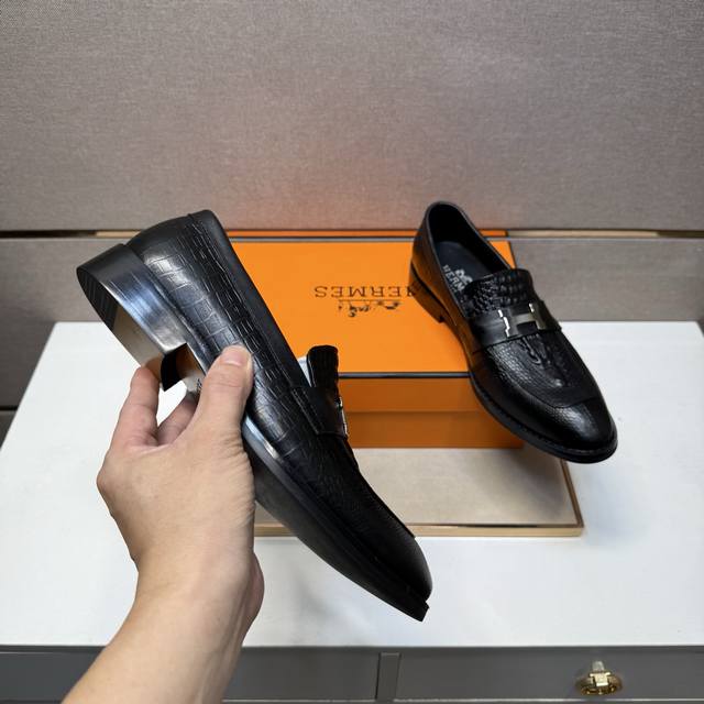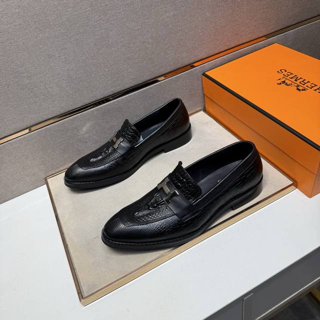 / 出厂价pp 爱马仕~ 男士休闲正装皮鞋 2025Z柜同步发售 码数:39-44 # 2个颜色鞋面选用多材质拼接真皮内里,舒适透气,鞋底:原版舒适耐磨大底,实物拍