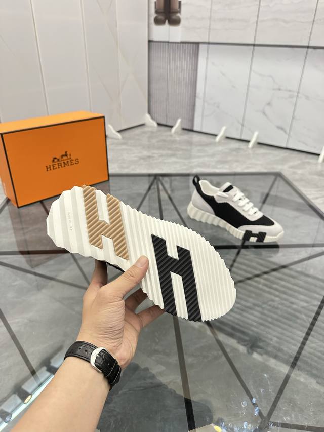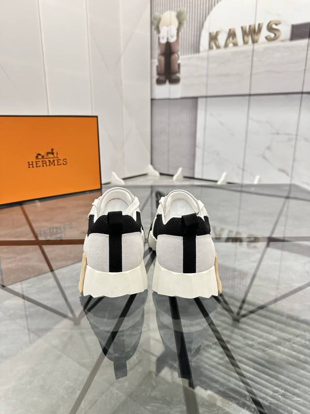 hermes 爱马仕 -高端品质 原单休闲运动鞋 -鞋面:摔纹小牛皮、品牌图腾帆布布匹 -内里:水染牛皮...