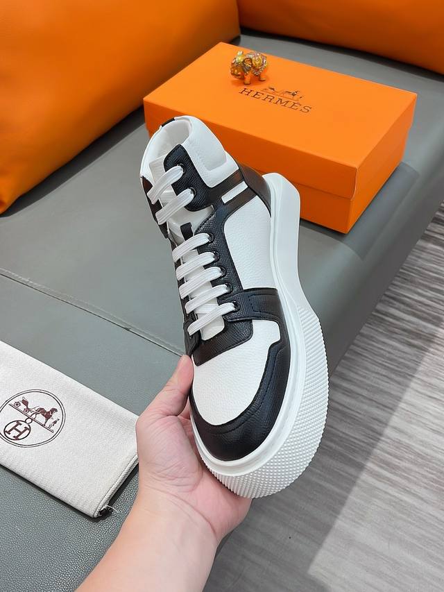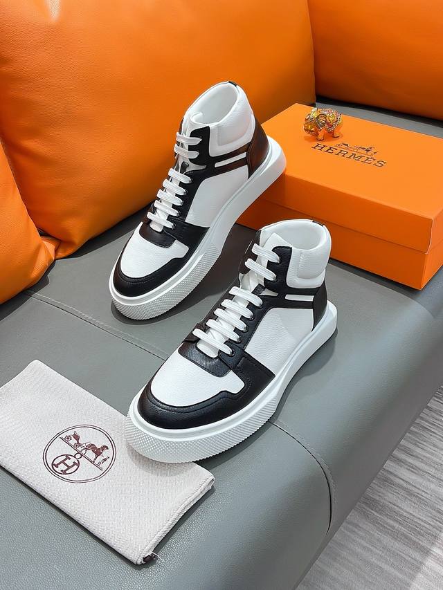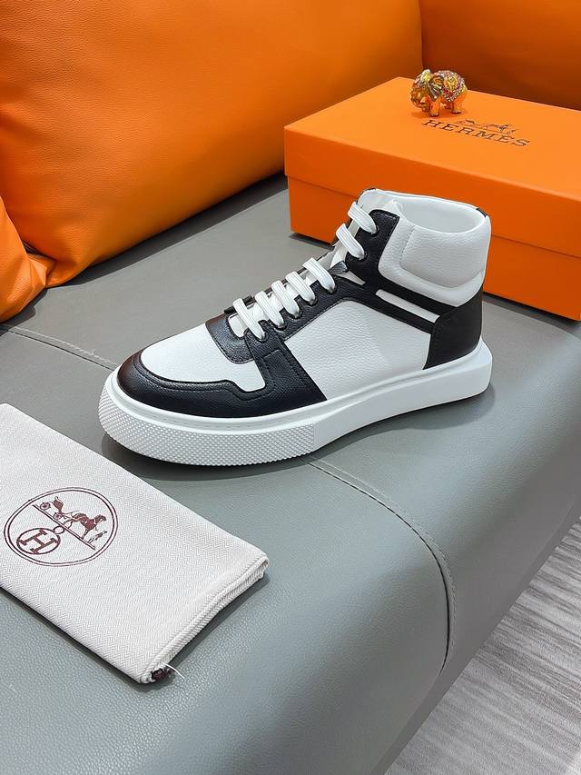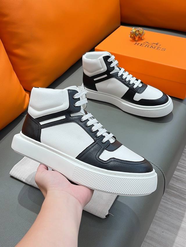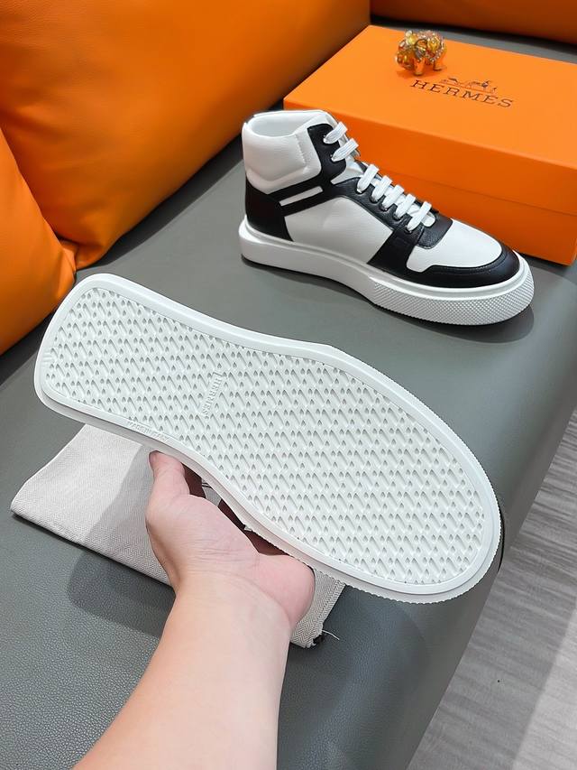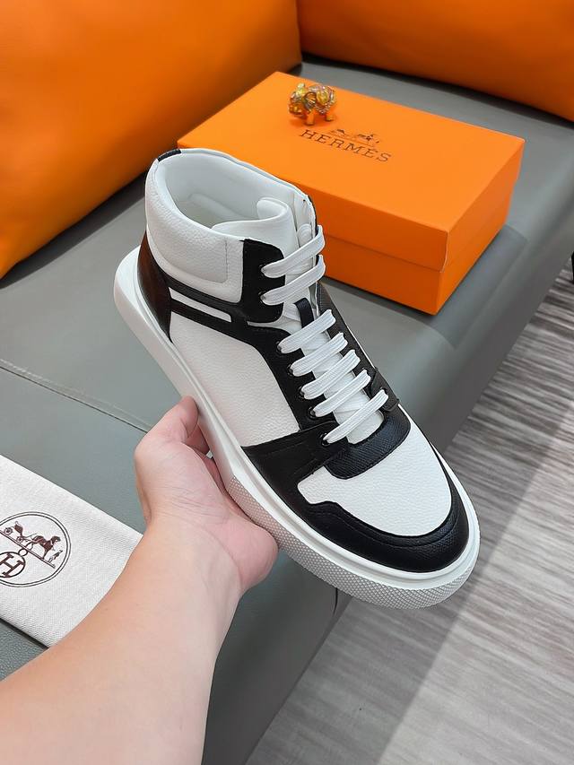商品名称:Hermes 爱马仕 正规码数: 38-44 高帮鞋 商品材料:精选 牛皮鞋面,舒适羊皮内里;原厂大底。