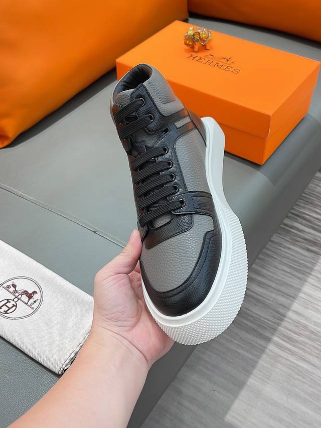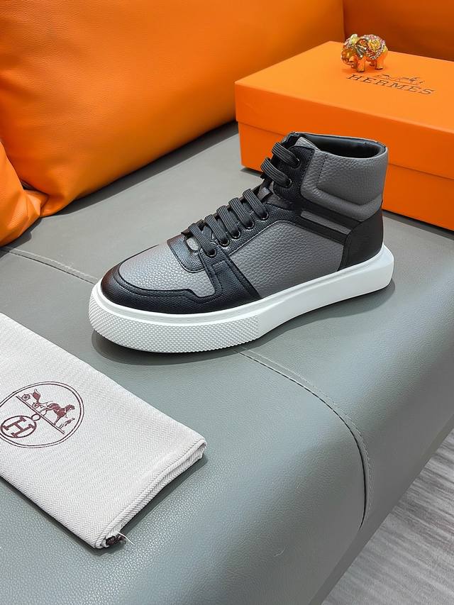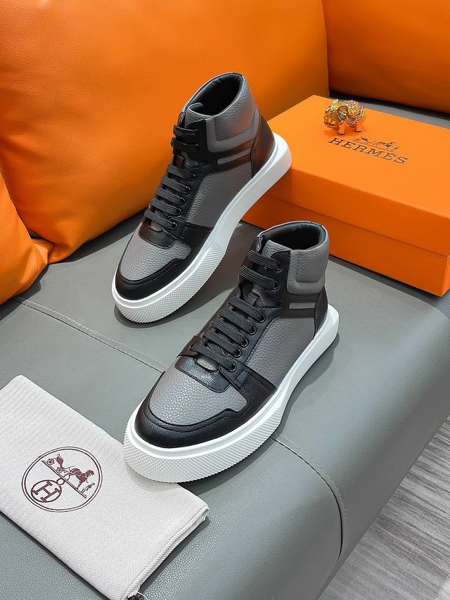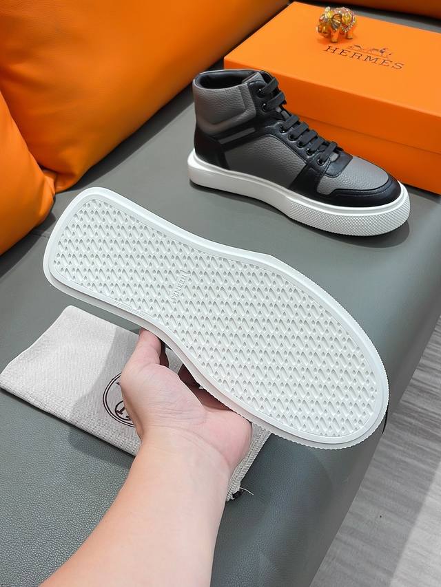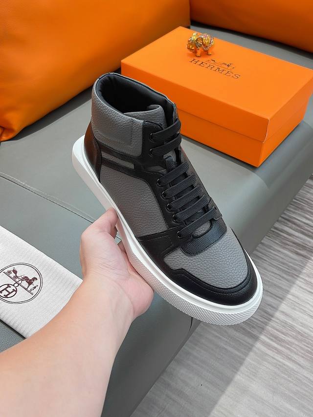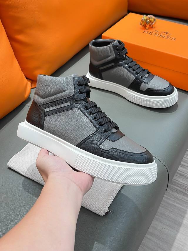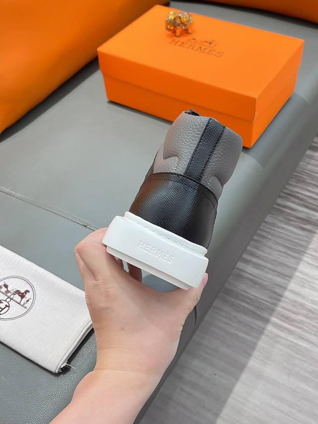 商品名称:Hermes 爱马仕 正规码数: 38-44 高帮鞋 商品材料:精选 牛皮鞋面,舒适羊皮内里;原厂大底。