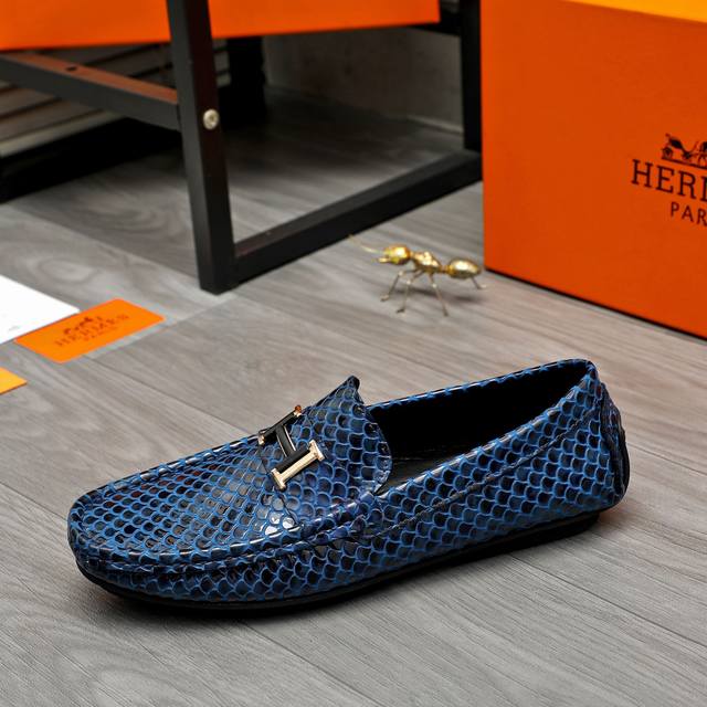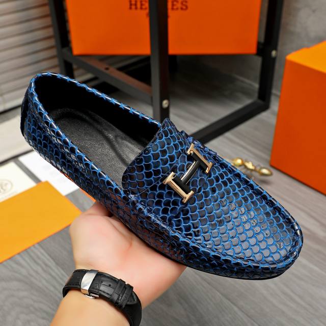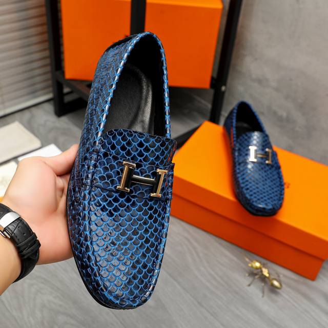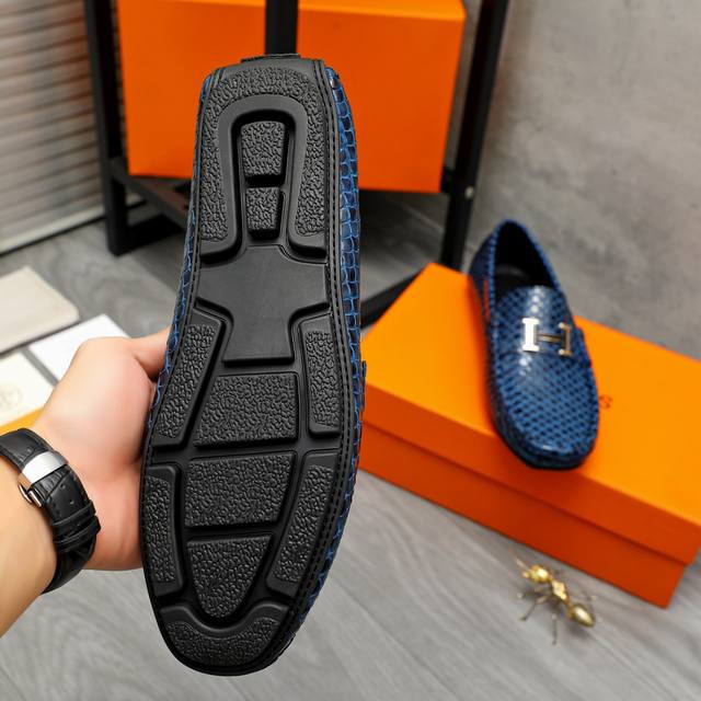 商品商标:Hermes 爱马仕 休闲套脚鞋 正码码数: 38-45 商品材料:精选蛇纹牛皮鞋面 羊皮内里 橡胶大底