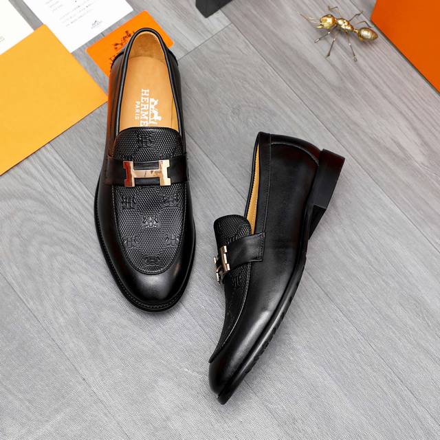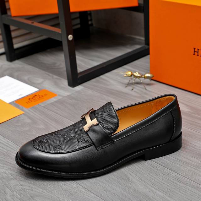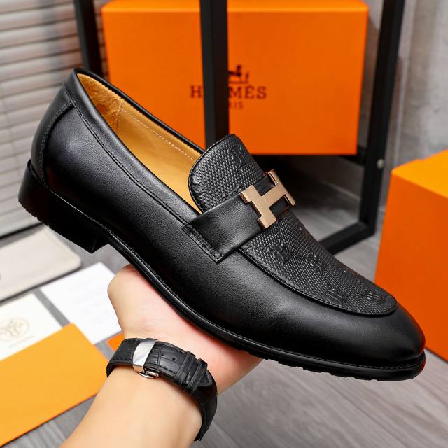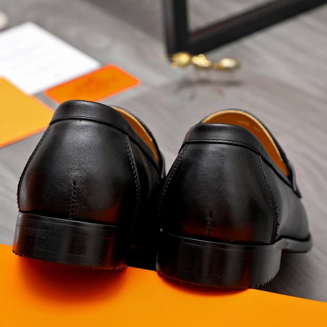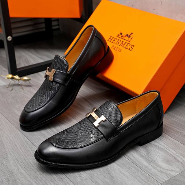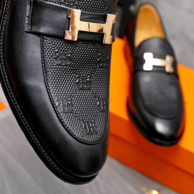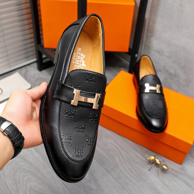 商品商标:Hermes 爱马仕 商务套脚皮鞋 正码码数: 38-44 45.46订做不退换 商品材料:精选牛皮压花鞋面 牛皮内里 原版大底