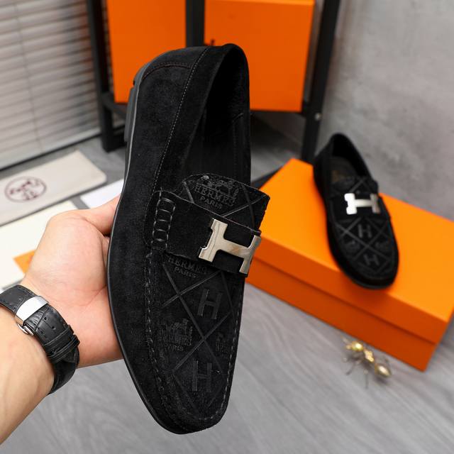 商品商标:Hermes 爱马仕 套脚鞋 正码码数: 38-44 商品材料:精选磨砂牛皮鞋面 牛皮内里 橡胶大底