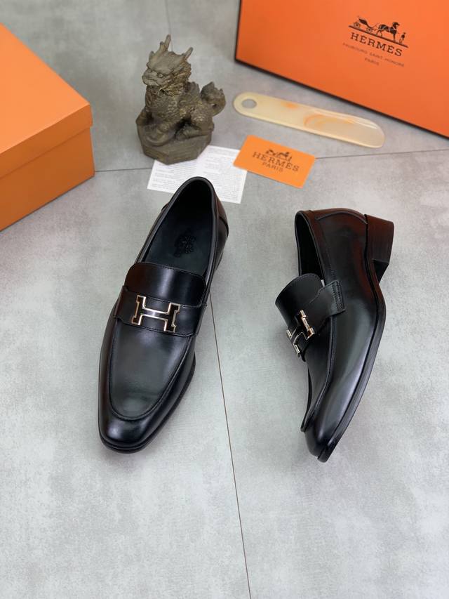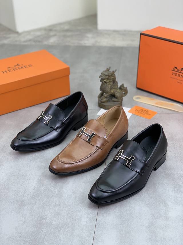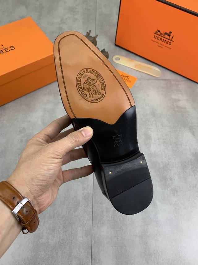 / 工厂价 实价 水染牛里 爱马仕 爱马仕 男士最新款休闲商务皮鞋!专柜同步上市!面料采用专用进口原版小牛皮,内里采用进口水染牛皮,绝对的奢华打造,引领时尚潮流 配