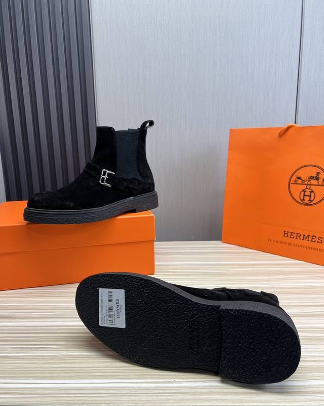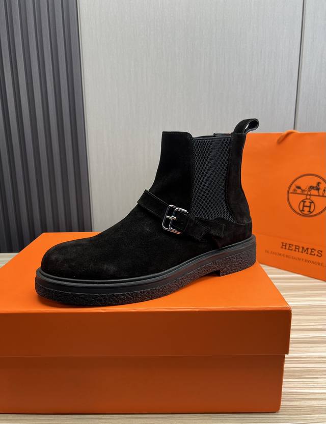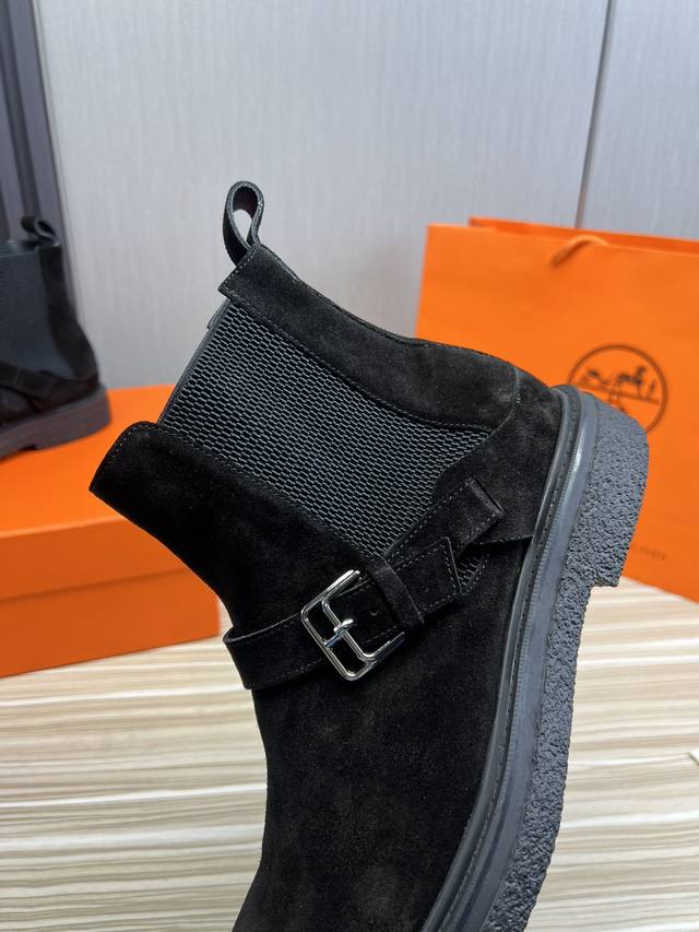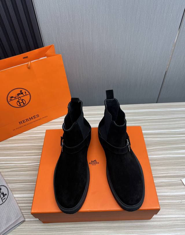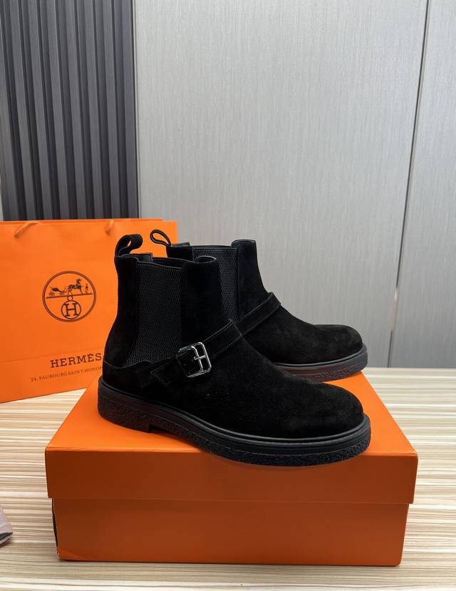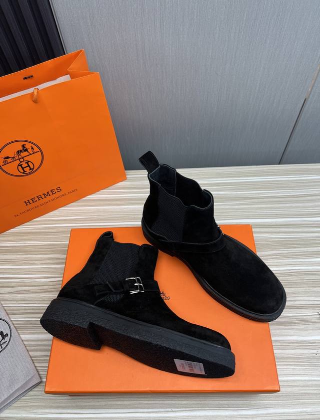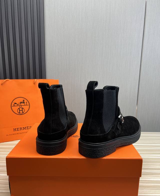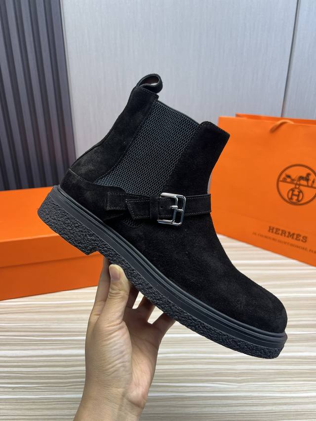 工厂价 爱马仕.H家秋冬follow小牛皮男款及裸靴. 官网1:1出货,原单品质 进口牛反绒鞋面+牛皮内里+组合牛筋大底 Size:39-44 38.45定做