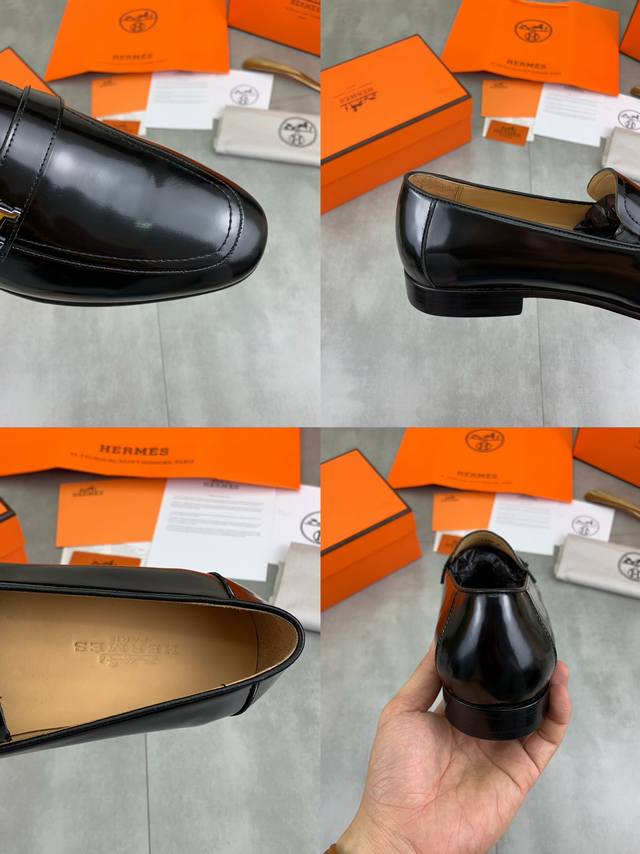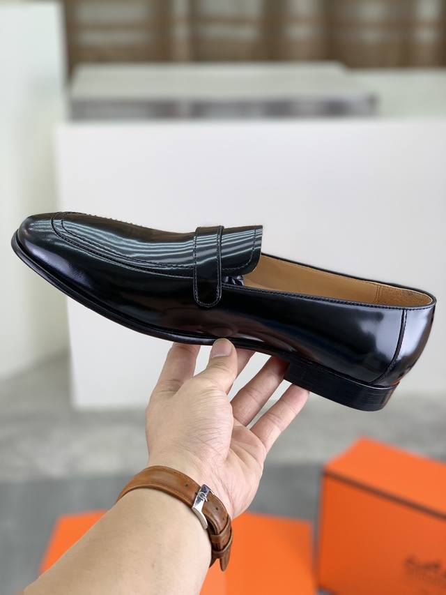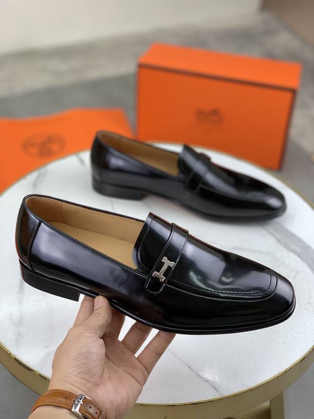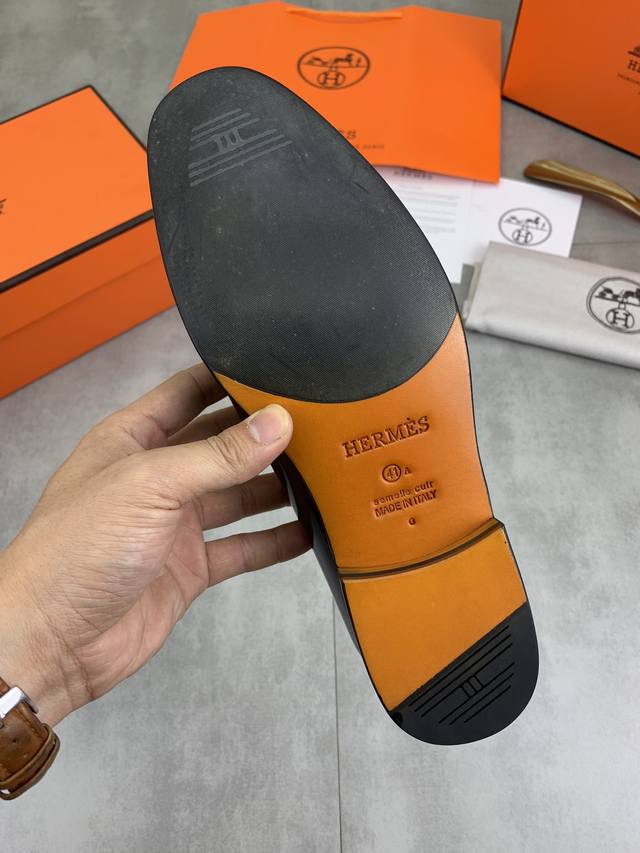 工厂价 顶级版本 原版真皮大底 品牌:Hermès 爱马仕 标准码:男码39-44 38、45可以定做 等级:官网同款 原单品质材料:原版柔软小牛皮 水染牛皮内里 原版意大利真皮大底款式类别:男士时尚 正装休闲皮鞋 套脚款男鞋系列 年轻时尚 欧美潮流 英伦风格 颜色:多款可选 专柜包装