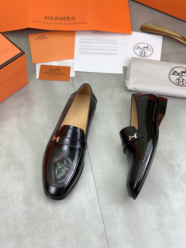 H家爱马仕 Job乐福鞋 !麂皮山羊皮乐福鞋,搭配橡胶鞋底,经典“H”型鞋面。 款式穿着感受舒适,打造休闲都市风格。 P:...