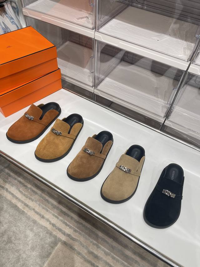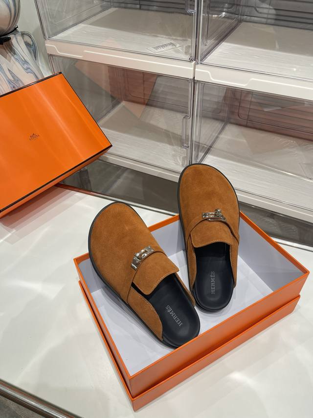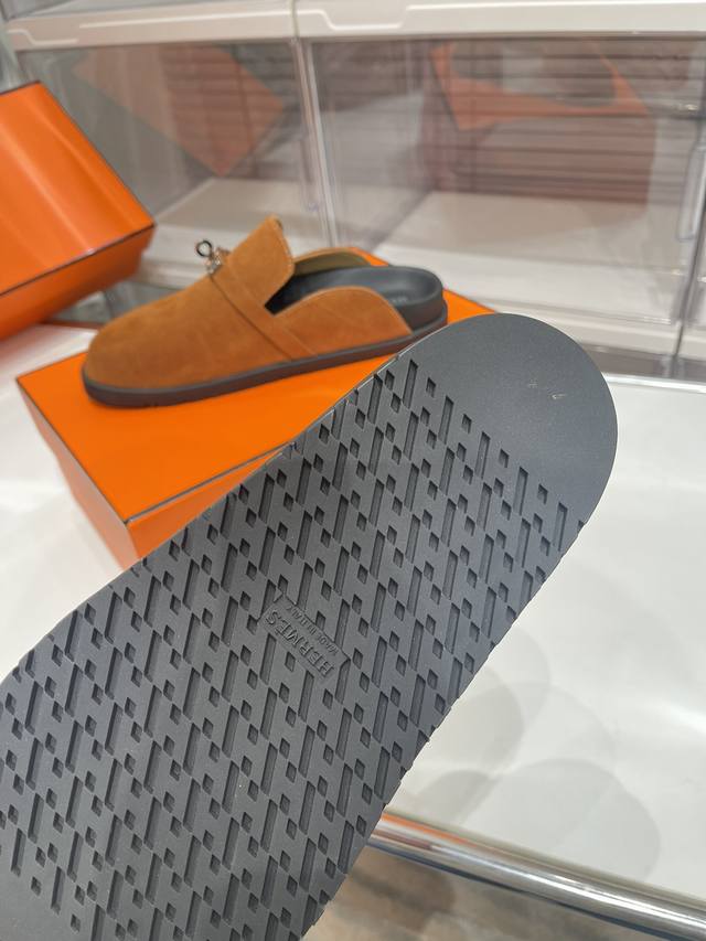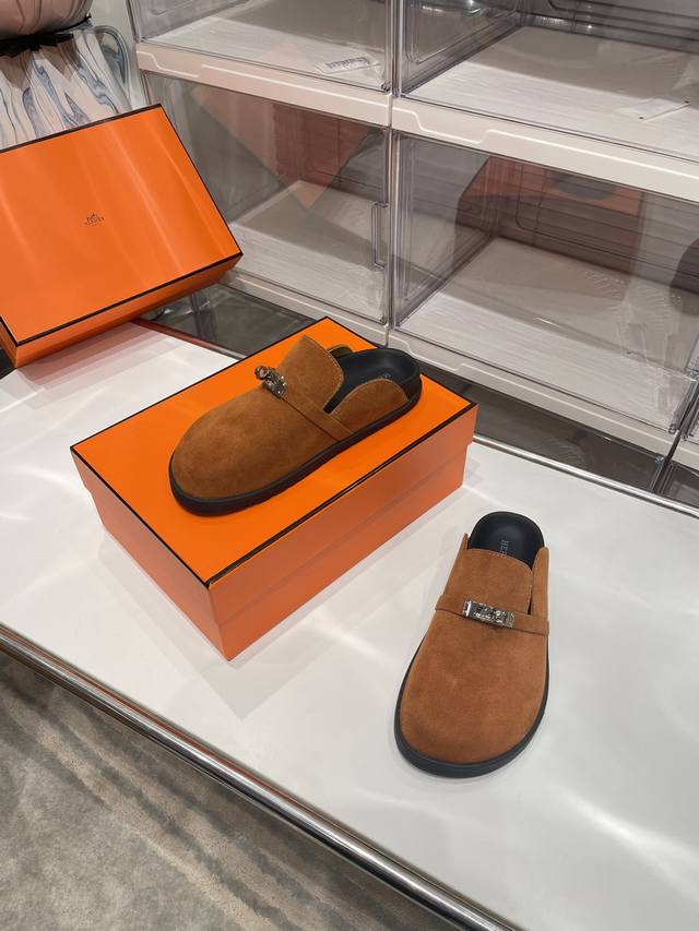 工厂价: Hermes爱马仕最新kelly扣情侣款勃肯拖鞋
