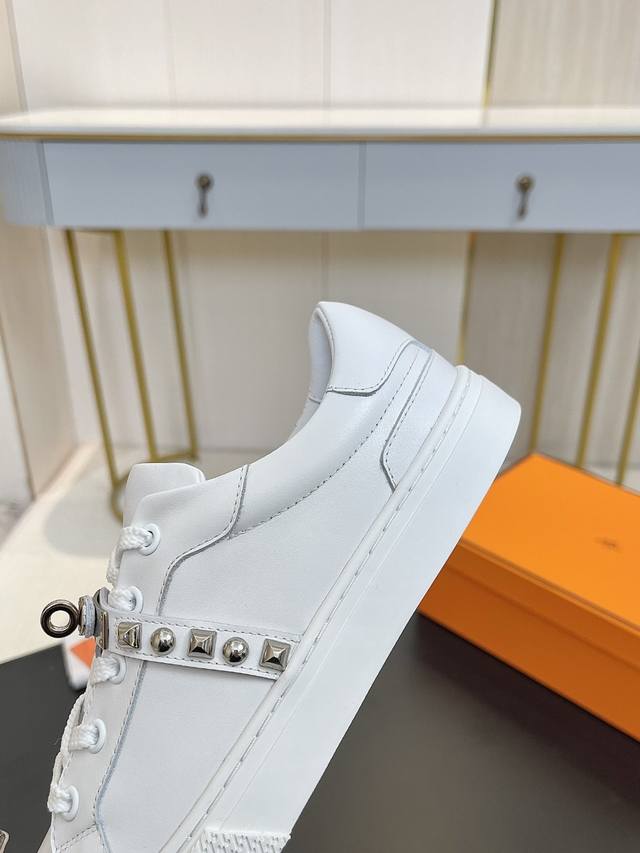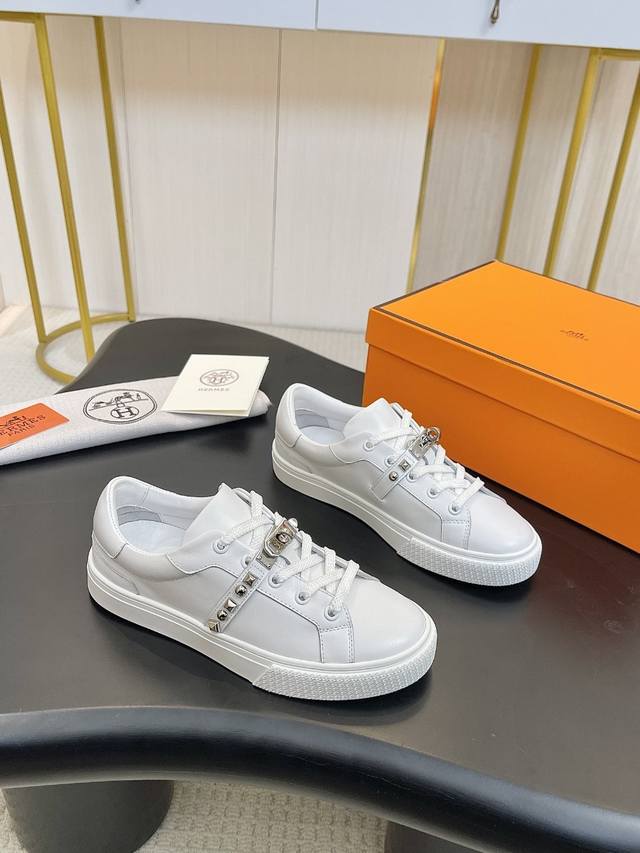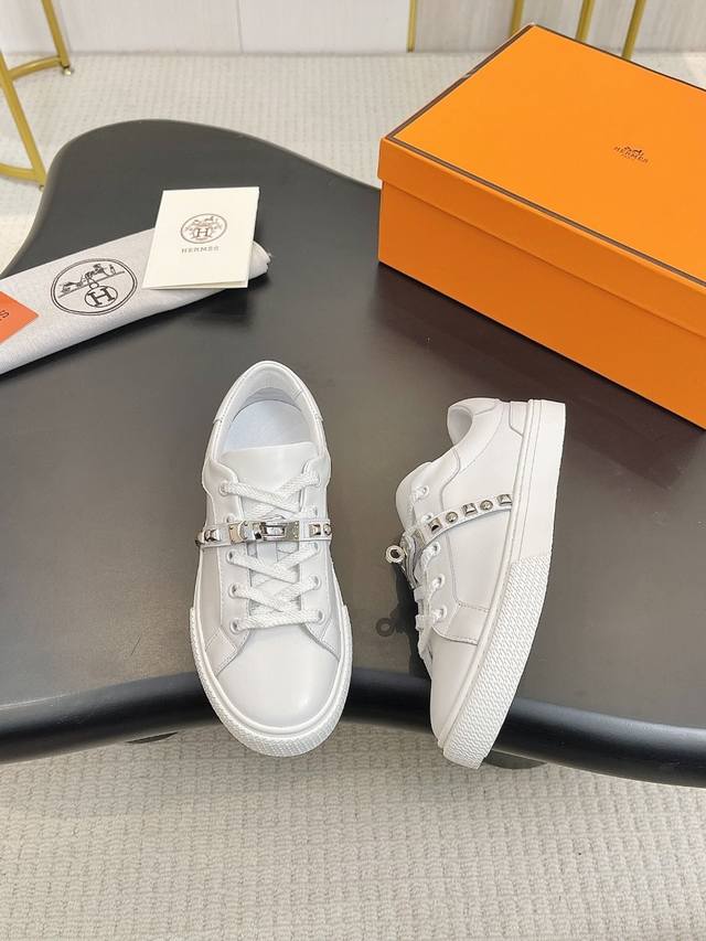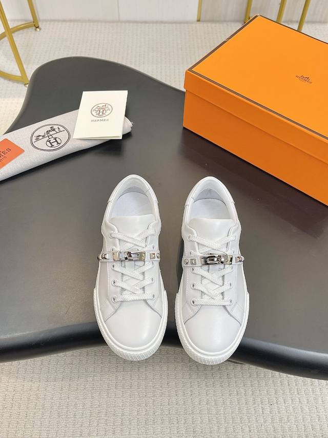 爱马仕 最新kelly扣小白鞋板鞋上线!