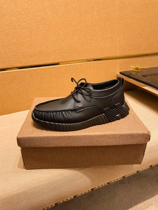 / 工厂批 爱马仕 男鞋高端品牌 官网1:1最新力作:鞋面采用意大利进口头层牛皮官网原版专用科技布面料搭配原版舒适透气内里原版指定防滑大底制作让行走更加便捷舒适!独