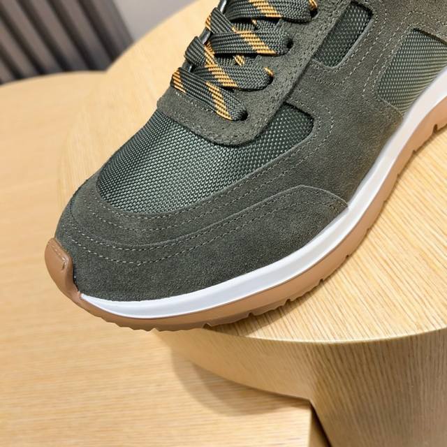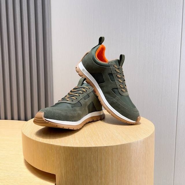 Herms爱马仕nappa皮和麂皮山羊皮运动鞋装饰撞色图案和标志性“H”细节。 打造前卫复古造型。 Size:39~44 38.45定制