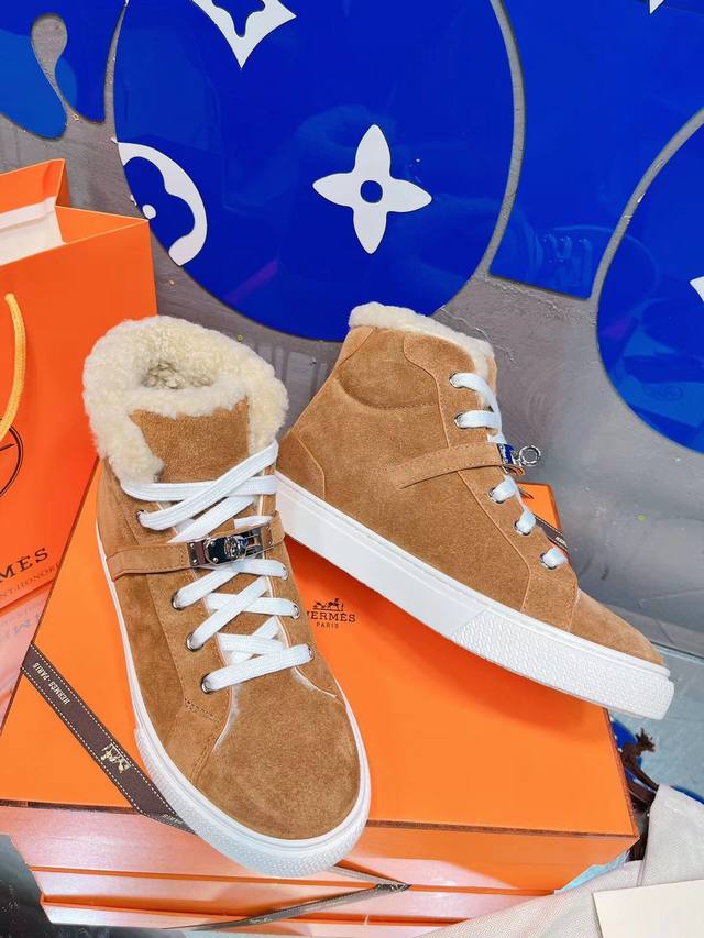 工厂p价 女装女鞋 运动原单 Herm*S 爱仕秋冬新款毛里Kelly扣休闲 鞋上线!满满的温暖感!可爱到不行的毛绒绒Kelly扣,厚实的毛踩上去软乎乎的 ,非常值得入手
