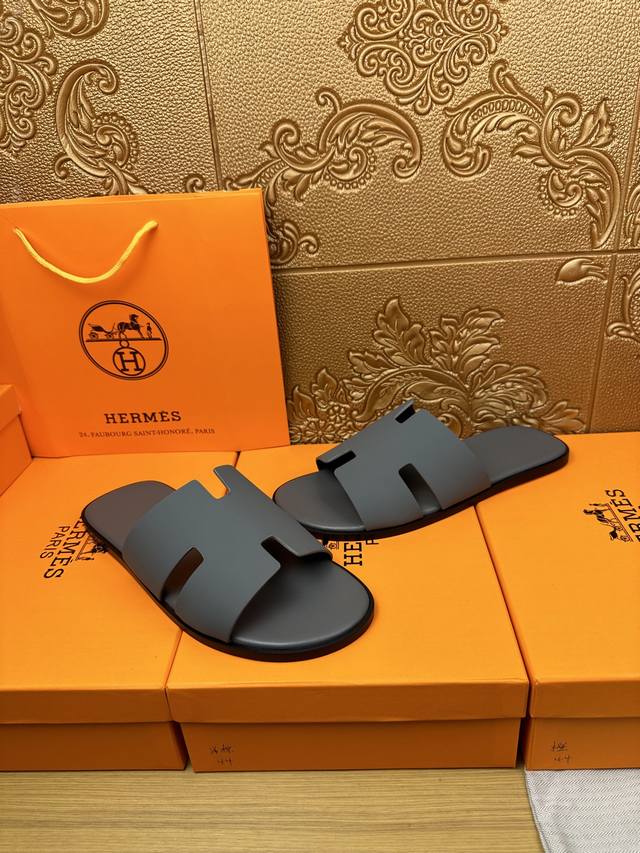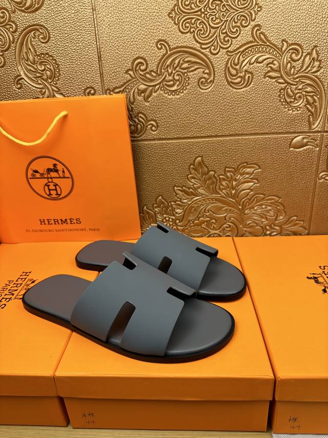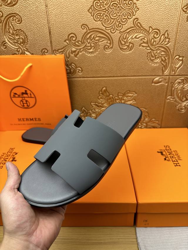 / 工厂P价P: Hermes爱马仕 官网最新专柜同步新款Oran牛皮面H拖鞋 巴黎原版飞回正品开模完美打造最高品质 诚意巨献,可随意进出专柜鞋面采用原版定制牛皮。