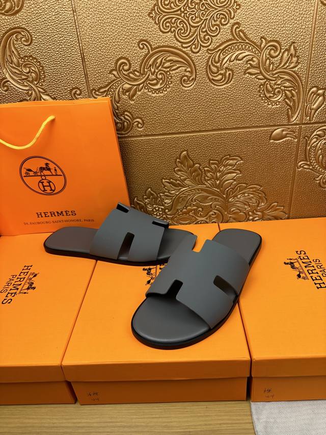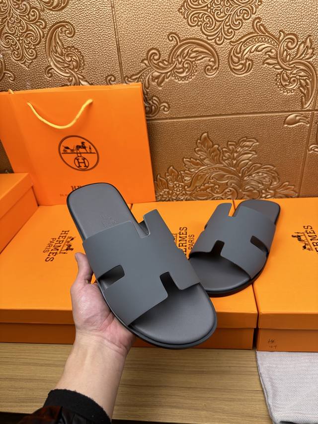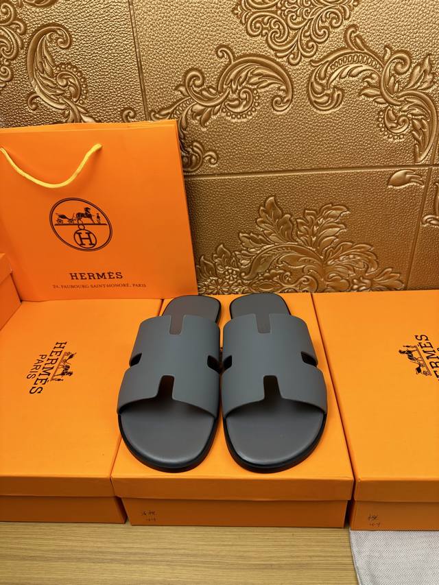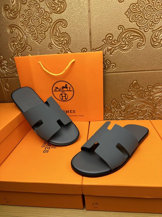工厂P价P: Hermes爱马仕 官网最新专柜同步新款Oran牛皮面H拖鞋 巴黎原版飞回正品开模完美打造最高品质 诚意巨献,可随意进出专柜鞋面采用原版定制牛皮。