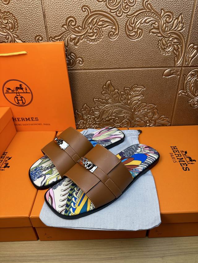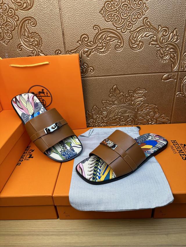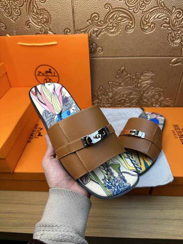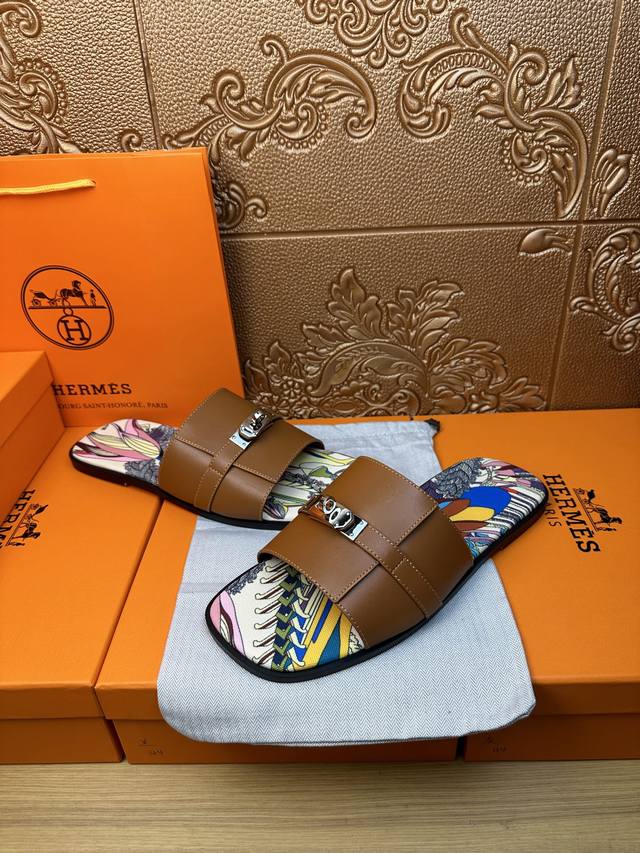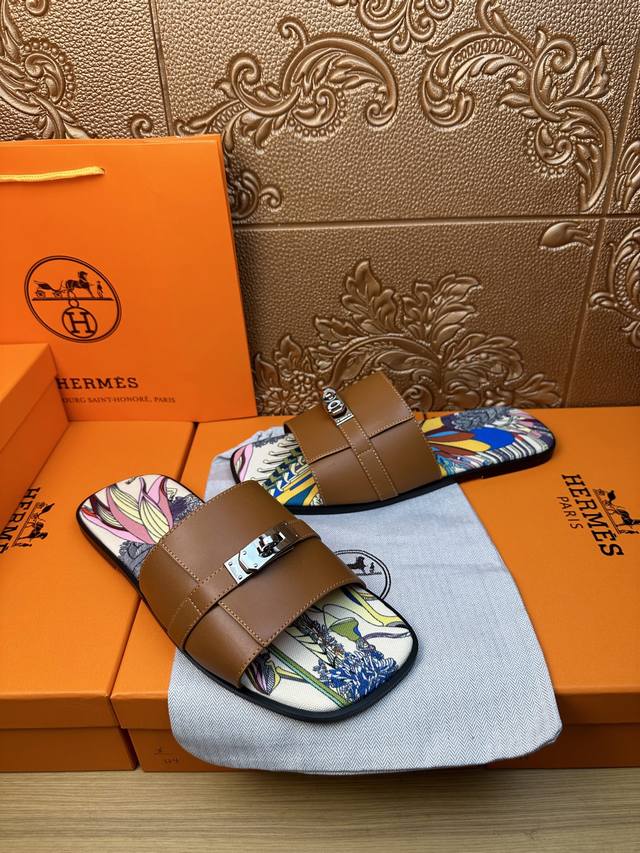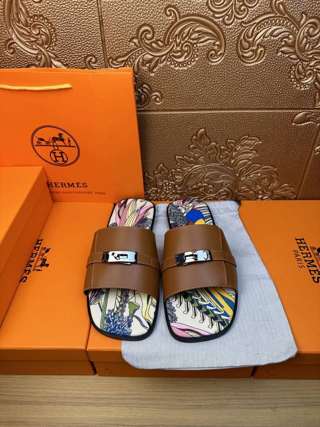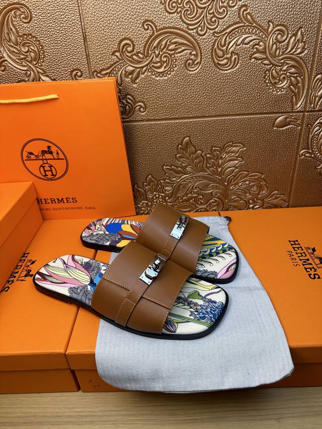 / 工厂P价P: Hermes爱马仕 官网最新专柜同步新款Oran牛皮面H拖鞋 巴黎原版飞回正品开模完美打造最高品质 诚意巨献,可随意进出专柜鞋面采用原版定制牛皮。
