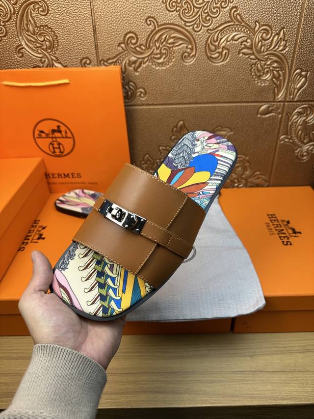 工厂P价P: Hermes爱马仕 官网最新专柜同步新款Oran牛皮面H拖鞋 巴黎原版飞回正品开模完美打造最高品质 诚意巨献,可随意进出专柜鞋面采用原版定制牛皮。彩色手掌纹。彩色牛皮,多色可选。进口皮垫脚内里,意大利最新原版大底,码数:38-46