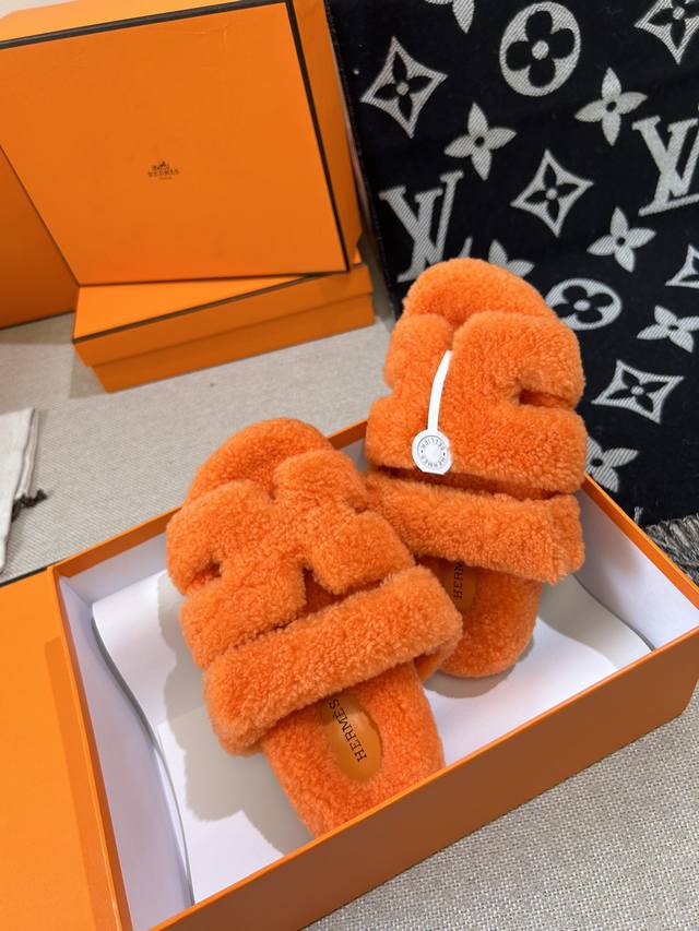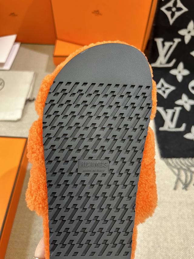 / 新配色herme*爱马仕二舅毛毛拖鞋 泰迪羊糕毛拖 秋冬款上脚超百搭暖底,无论居家还是出门逛街都可以 穿搭界的时髦精 面料:泰迪羊真皮毛 里料 垫脚:泰迪羊真皮