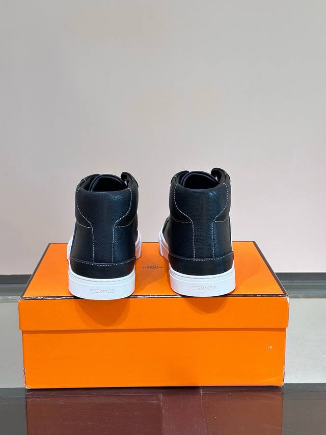 爱马仕高端奢品,男士高帮休闲运动鞋,小牛皮拼接,精品级别,打造现代都会风格!进口小牛皮内里,柔软舒适 ,Tpu大底 轻便舒适,精品级别!38-44