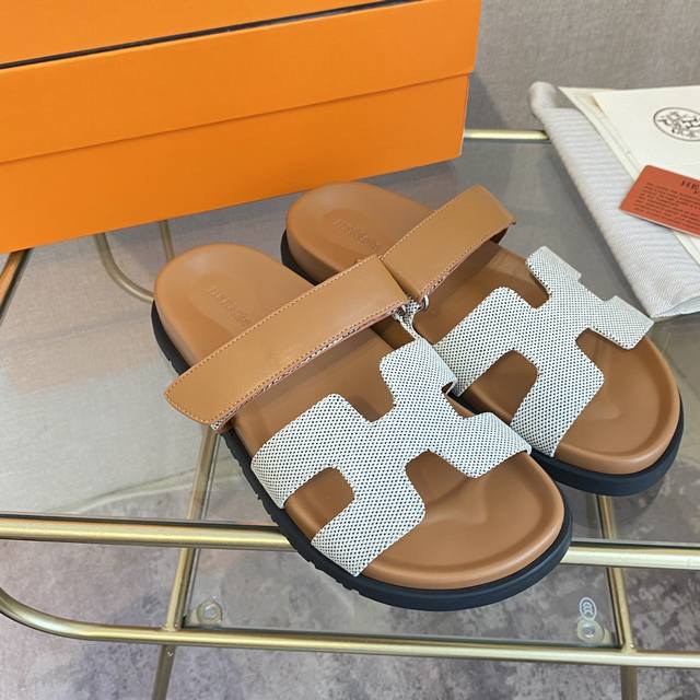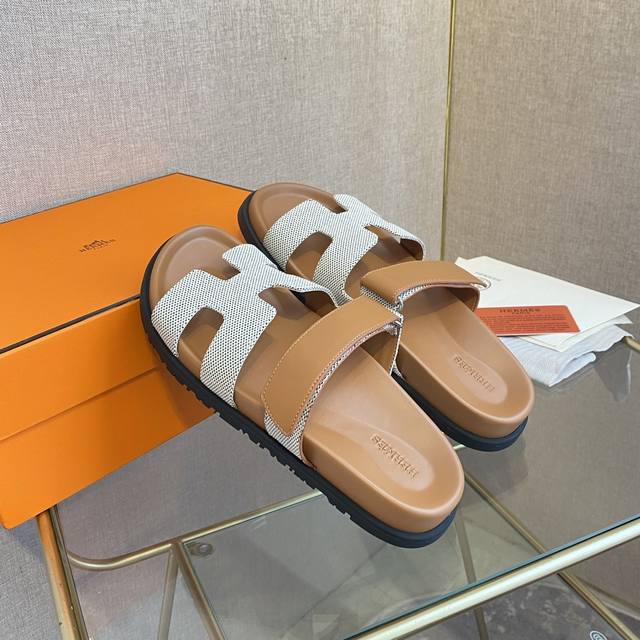 男+10。Hermès 爱马仕 男女同款春夏新款老舅凉鞋实力来袭 网红同款 休闲百搭简单ins&小红书超多网红明星纷纷种草 鞋子上脚超级百搭 随时随地刻画自己的女神风范 原版1:1开发最高版本级别 大底:原版TPU 防滑耐磨大底 原版包装 码数:35-44 45.46订做不退不换 男+10