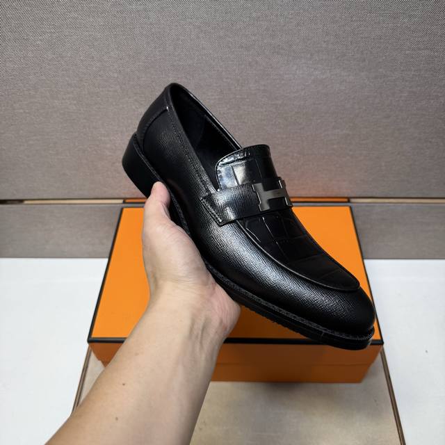 / 调工厂p价 男装男鞋 运动原单 爱马仕~ 男士休闲正装皮鞋 2025Z柜同步发售 码数:39-44 # 1个颜色鞋面选用多材质拼接真皮内里,舒适透气,鞋底:原版