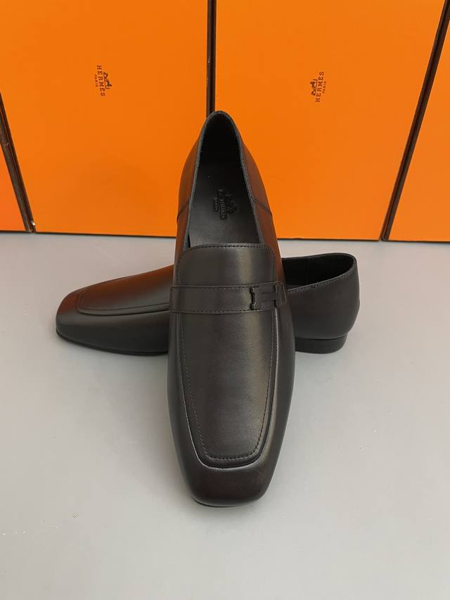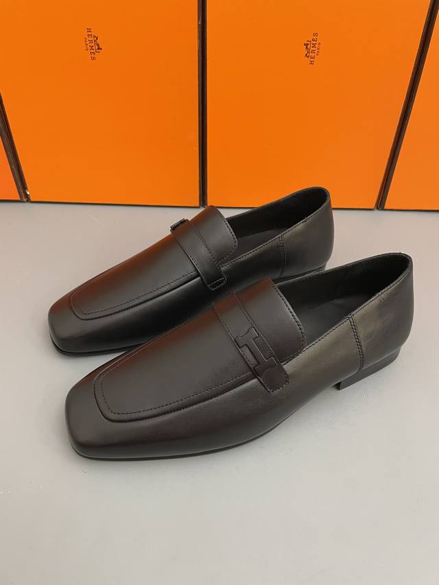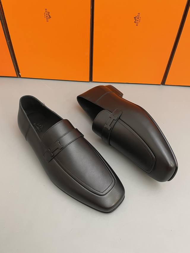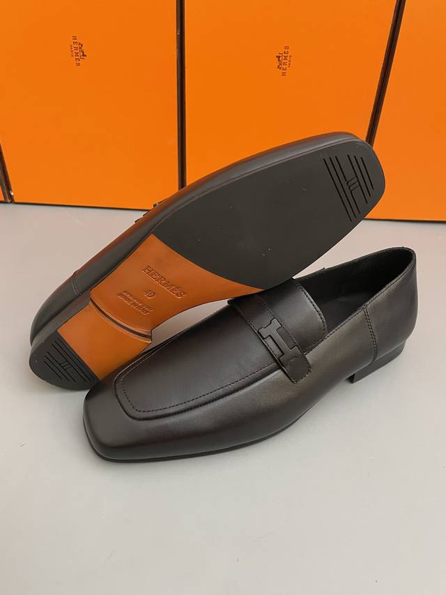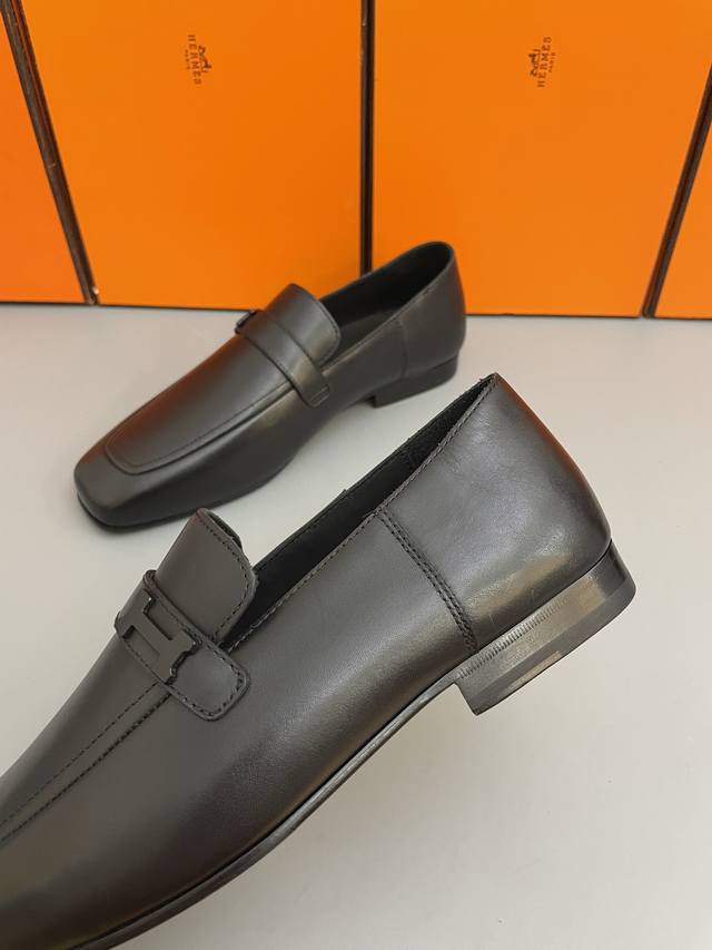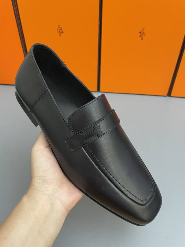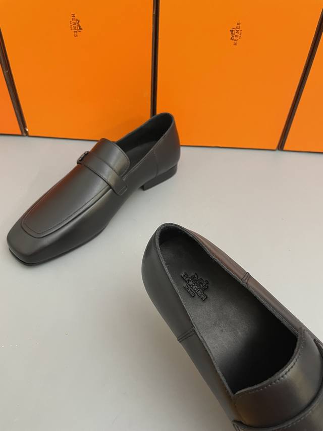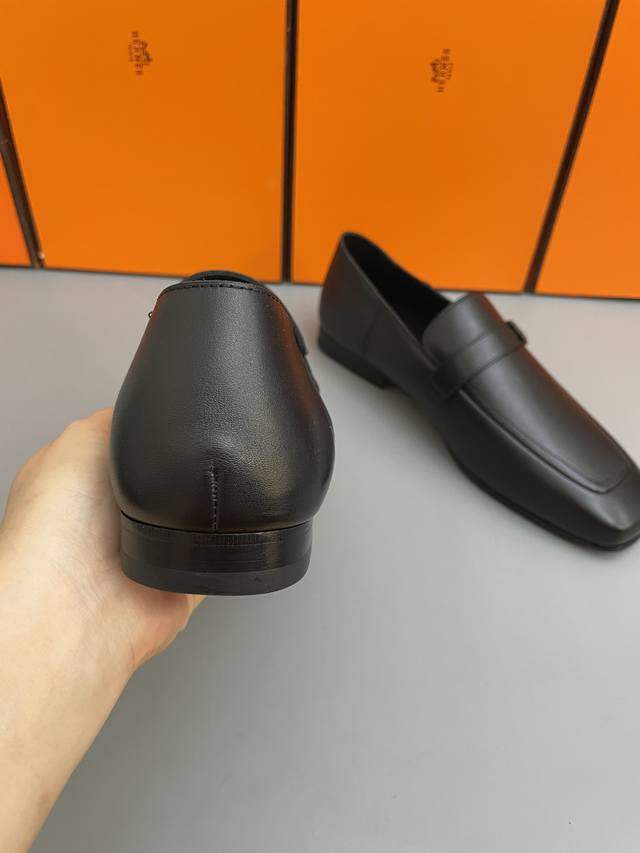 h家新品 Herme* 爱马-仕 Giovanni乐福鞋皮鞋 官方售价rm B ,350 采用进口牛皮 高丝光磨砂牛皮打造 鞋面横带饰镀钯paris鞋扣 内里水染牛皮里 原版真皮大底复合橡胶底片 增强抓地性能 立体凹凸感logo尽显奢华品质 精致做工 打造悠闲典雅风范 一脚蹬穿着 经典隽永的优雅设计 彰显时尚前卫风格。标准皮鞋码数:39~44# 38.45.46# 定做