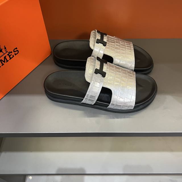 / H家 爱马仕 Size:38-45 Hermes男士 Kazimir拖鞋- 2025夏季爱马仕新款原版一样, 牛皮面橡胶组合底,师傅级纯手工打造 !高端定制,独