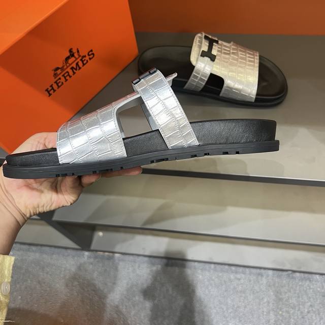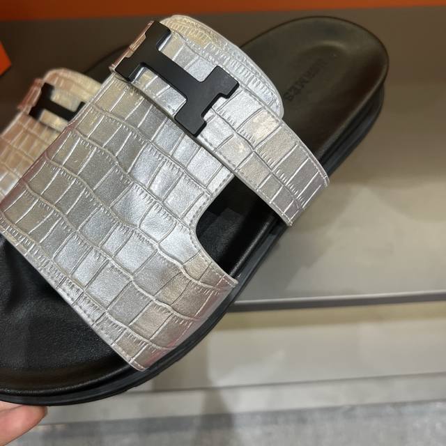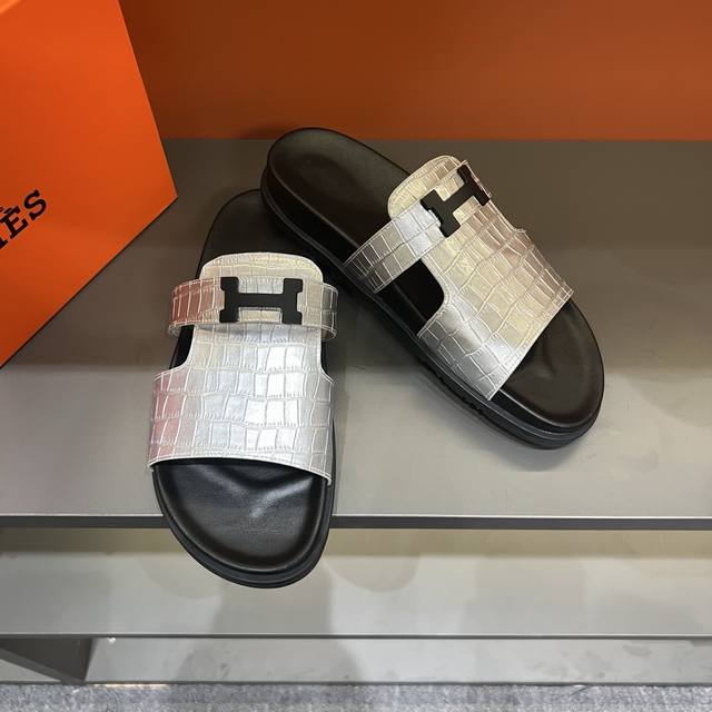 H家 爱马仕 Size:38-45 Hermes男士 Kazimir拖鞋- 2025夏季爱马仕新款原版一样, 牛皮面橡胶组合底,师傅级纯手工打造 !高端定制,独