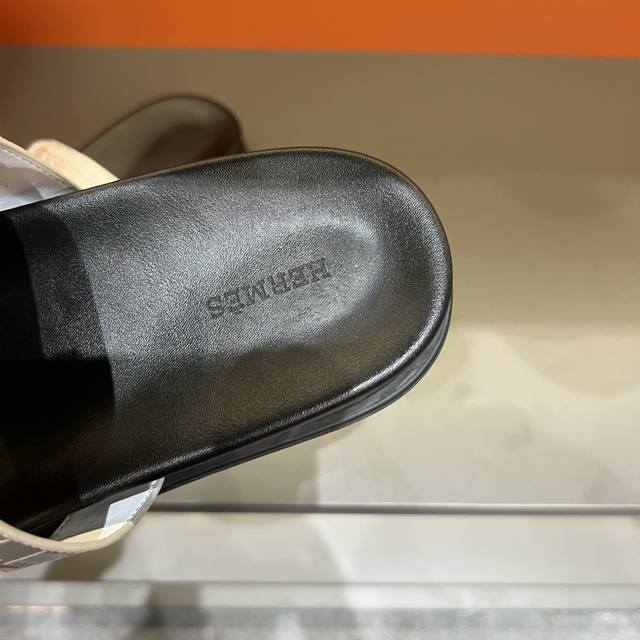 工厂P价P: Hermes爱马仕 官网最新专柜同步新款Oran牛皮面H拖鞋 巴黎原版飞回正品开模完美打造最高品质...