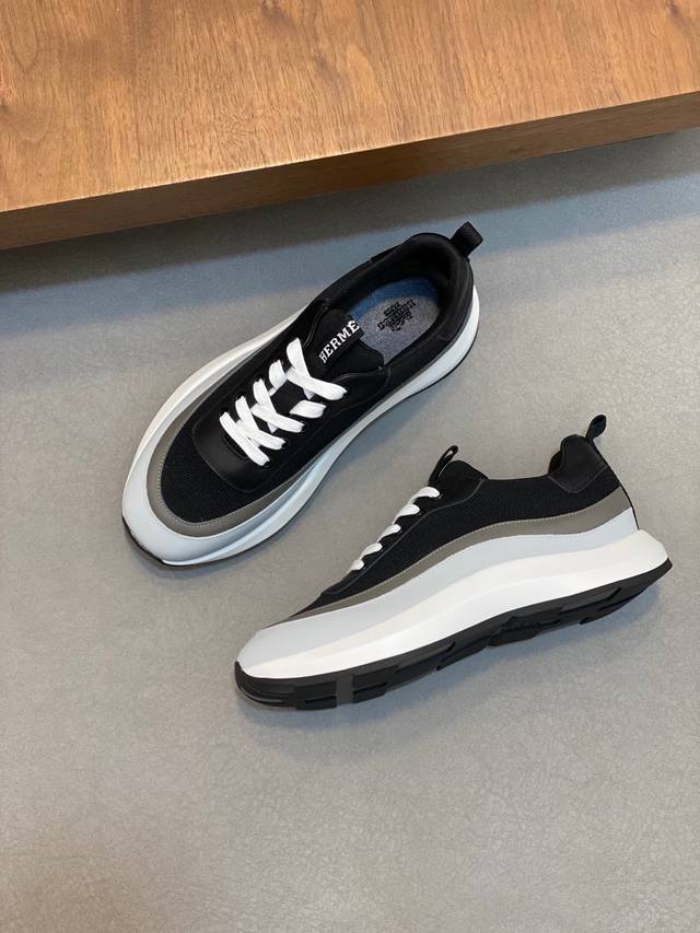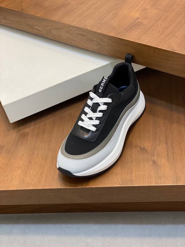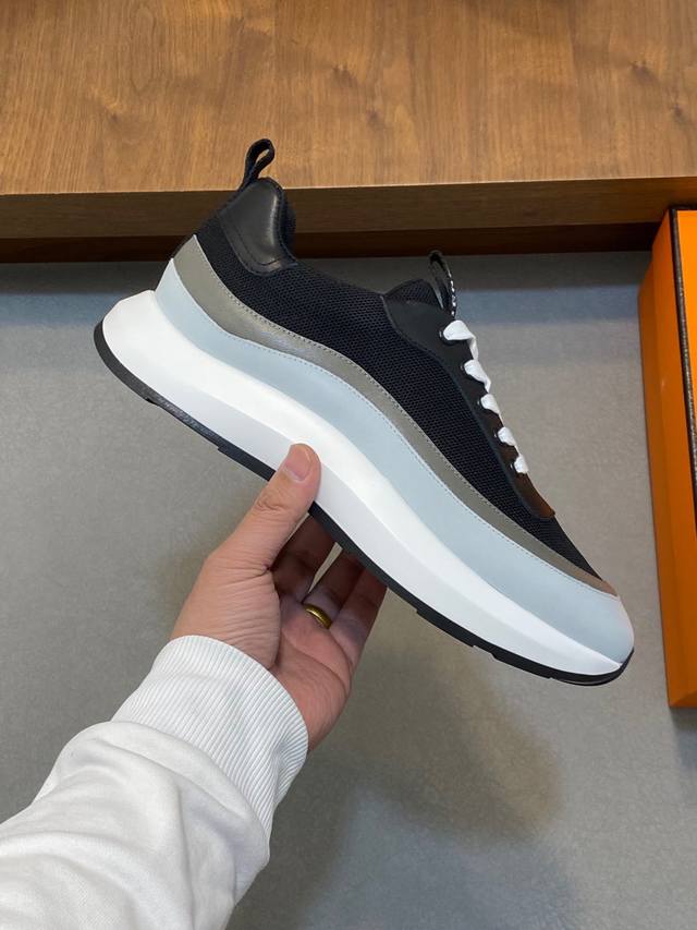 / H爱马仕bouncing运动鞋,男士休闲运动鞋,鞋面牛皮拼接高端网布打造,进口材质,质感十足,轻盈鞋底装饰撞色图案,打造百搭时尚风格 Size:38-44 45