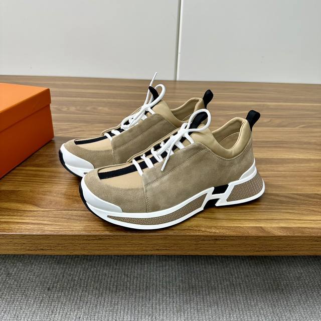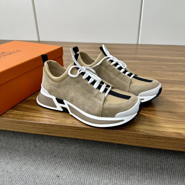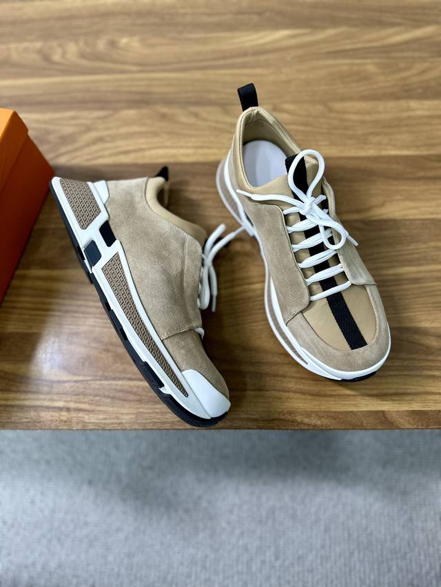 / h爱马仕bouncing运动鞋,男士休闲运动鞋,鞋面牛皮拼接高端网布打造,进口材质,质感十足,轻盈鞋底装饰撞色图案,打造百搭时尚风格。Size:38-44 45