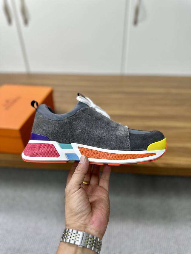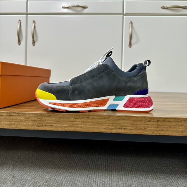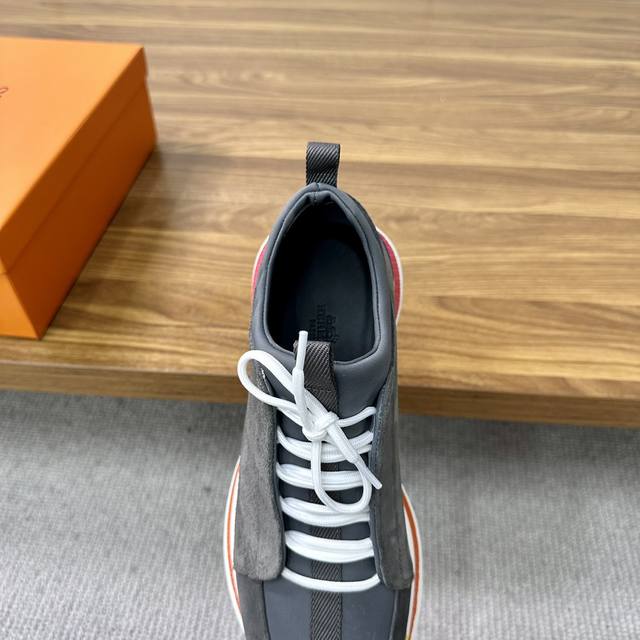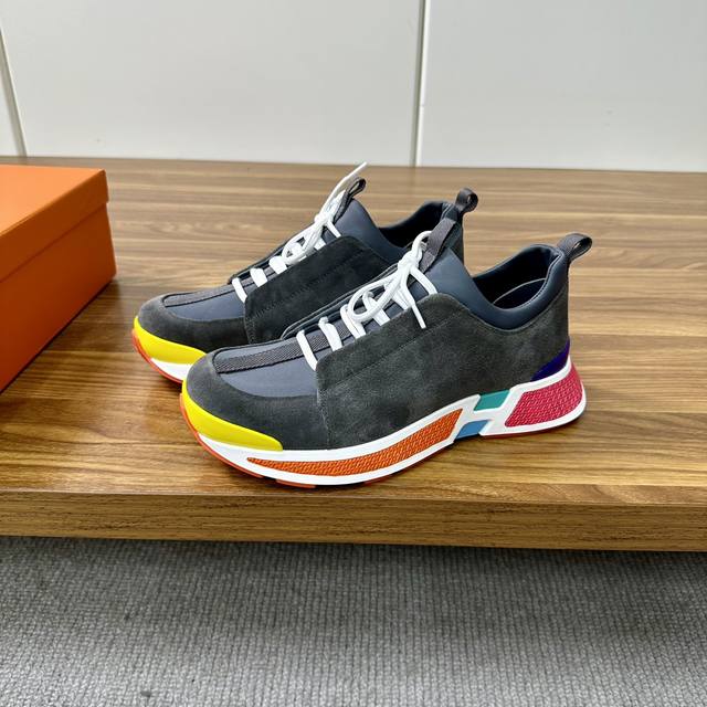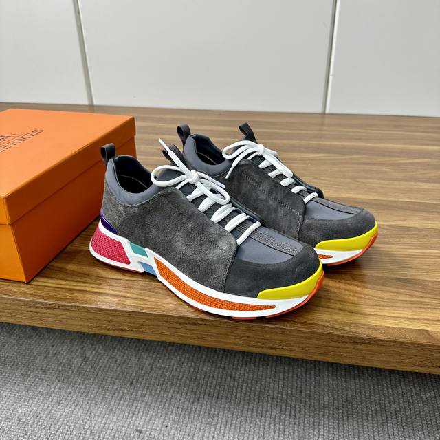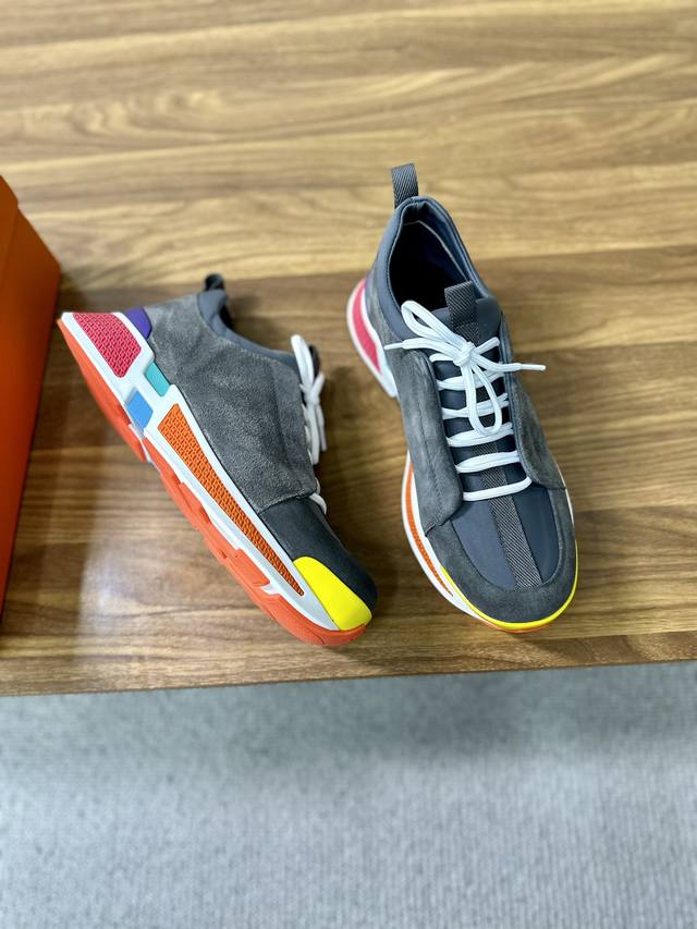h爱马仕bouncing运动鞋,男士休闲运动鞋,鞋面牛皮拼接高端网布打造,进口材质,质感十足,轻盈鞋底装饰撞色图案,打造百搭时尚风格。Size:38-44 45