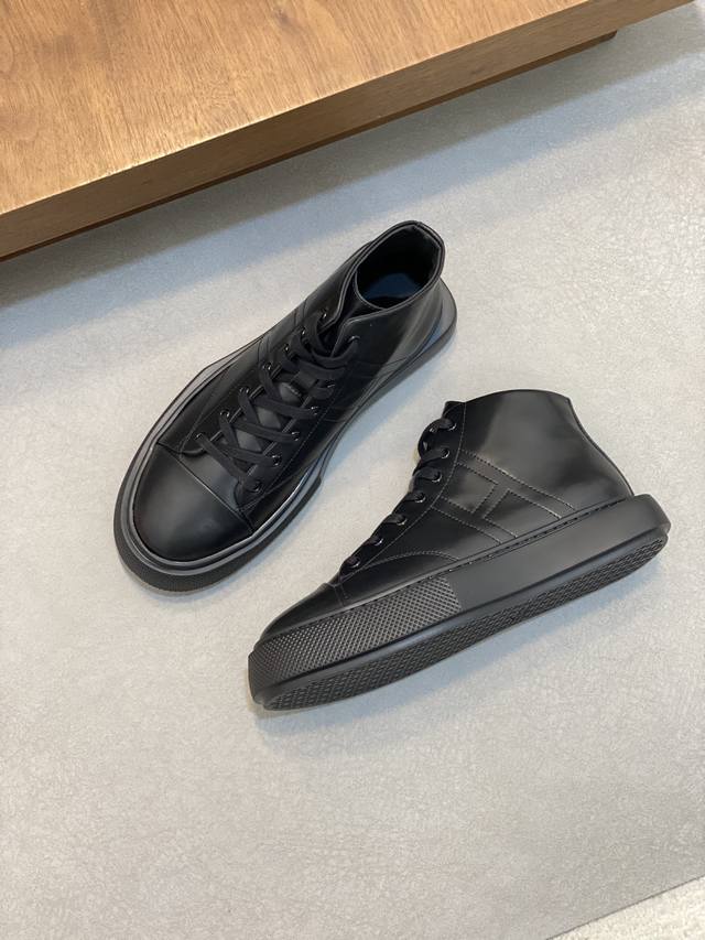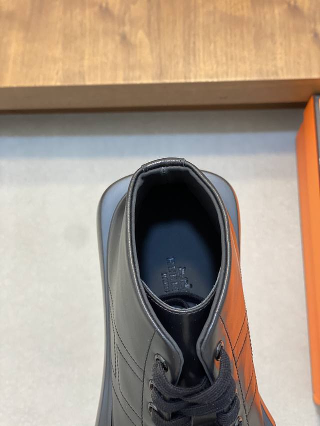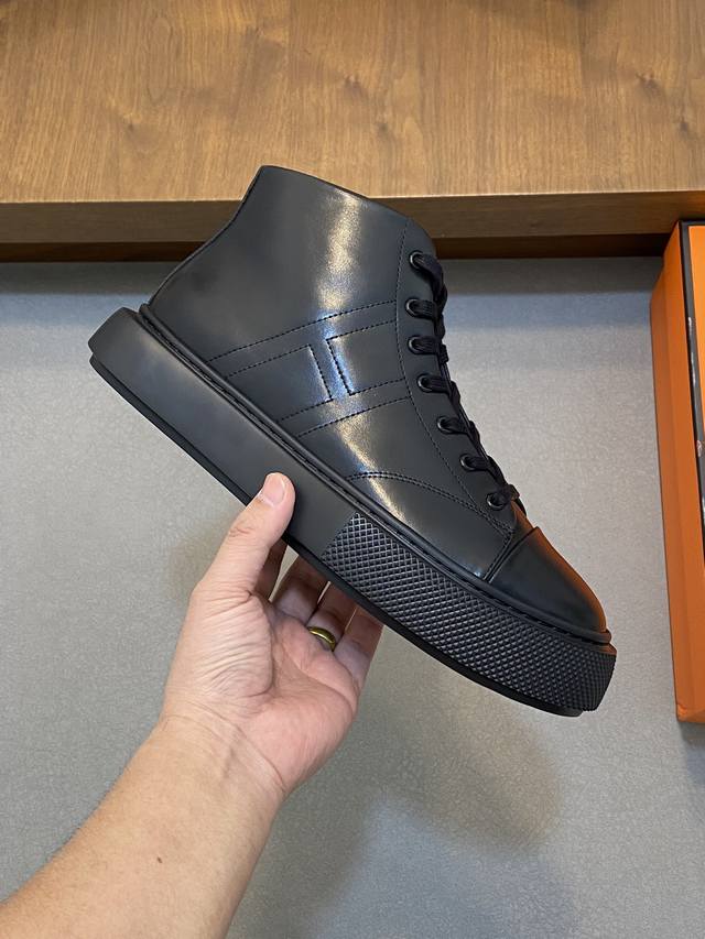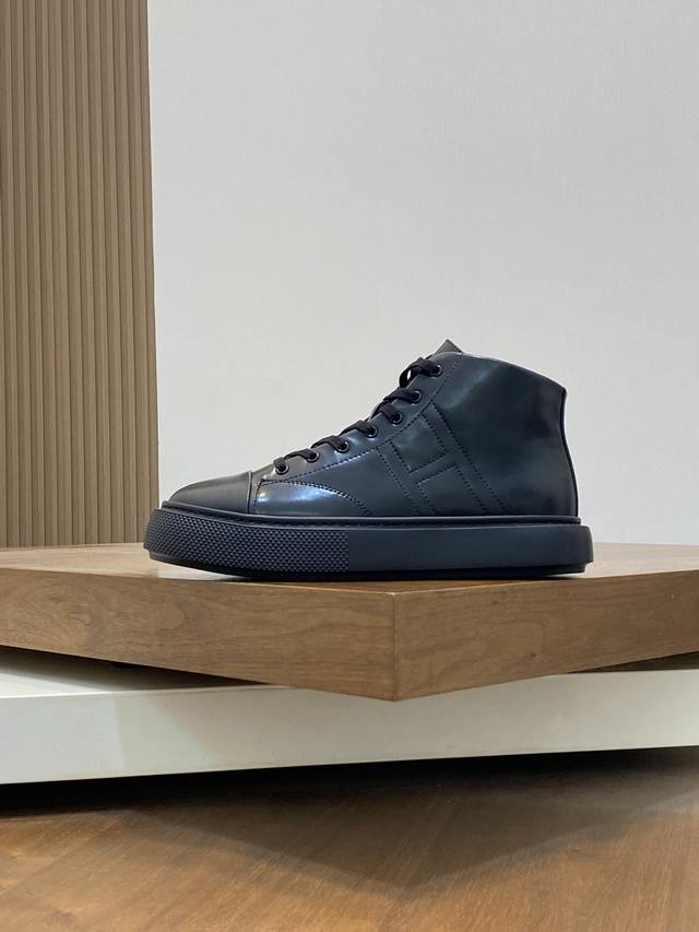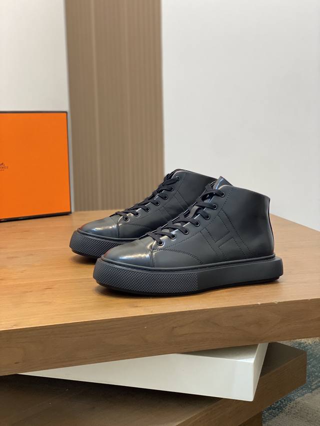 h 爱马仕高端奢品,男士高帮休闲运动鞋,小牛皮拼接,精品级别,打造现代都会风格!进口小牛皮内里,柔软舒适 ,Tpu大底 轻便舒适,精品级别!