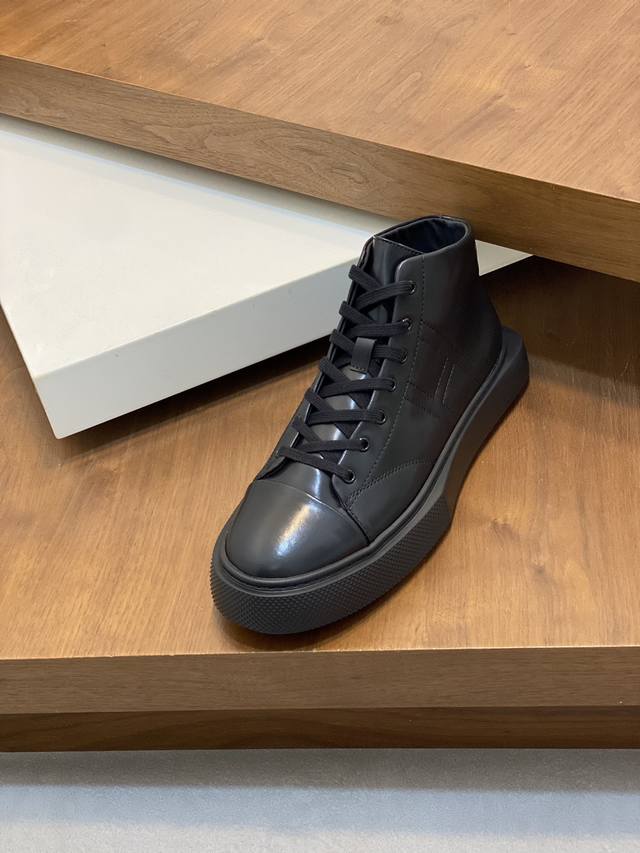 / h 爱马仕高端奢品,男士高帮休闲运动鞋,小牛皮拼接,精品级别,打造现代都会风格!进口小牛皮内里,柔软舒适 ,Tpu大底 轻便舒适,精品级别! Size:38-4