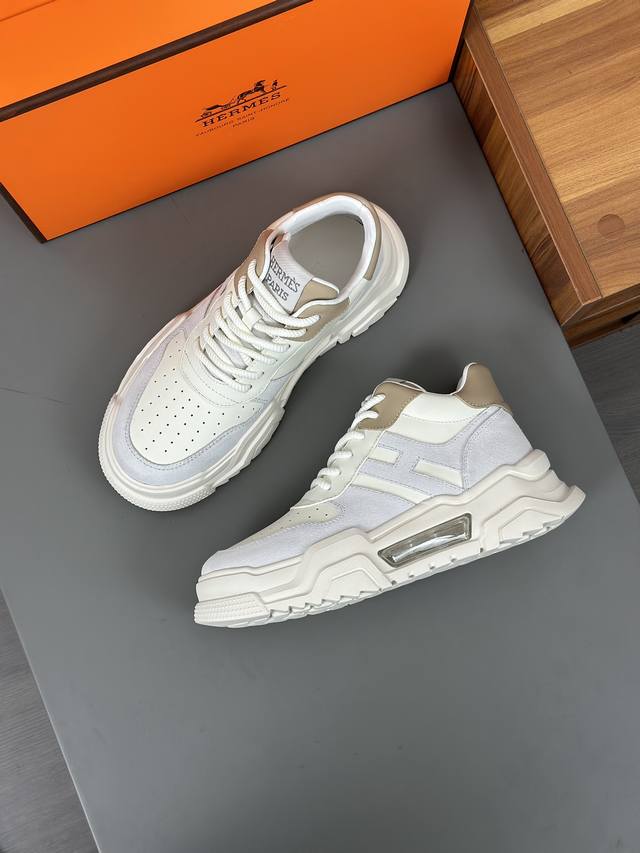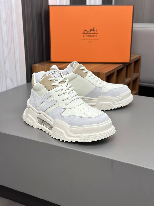 / h 爱马仕高端奢品,男士高帮休闲运动鞋,小牛皮拼接,精品级别,打造现代都会风格!进口小牛皮内里,柔软舒适 ,Tpu大底 轻便舒适,精品级别!Size:39-44