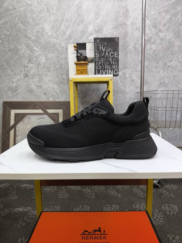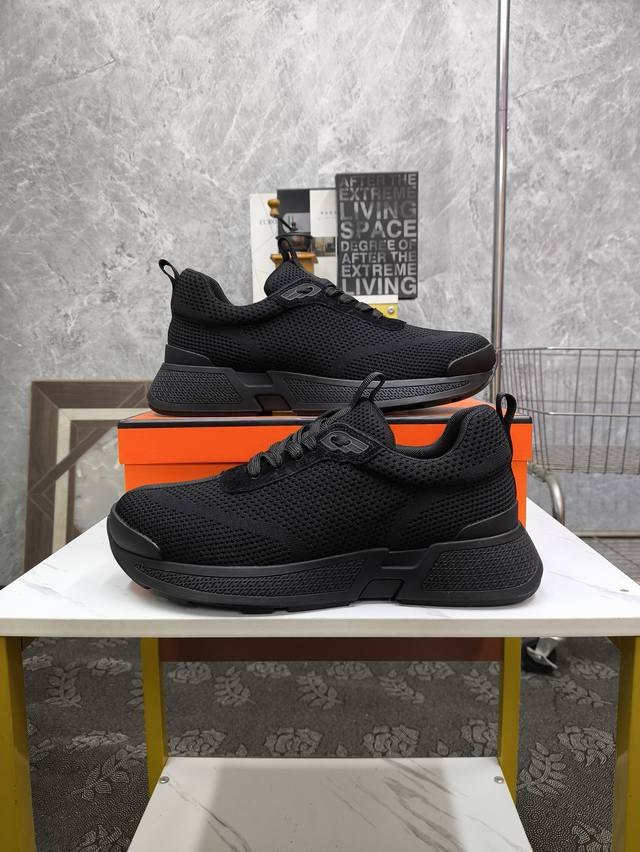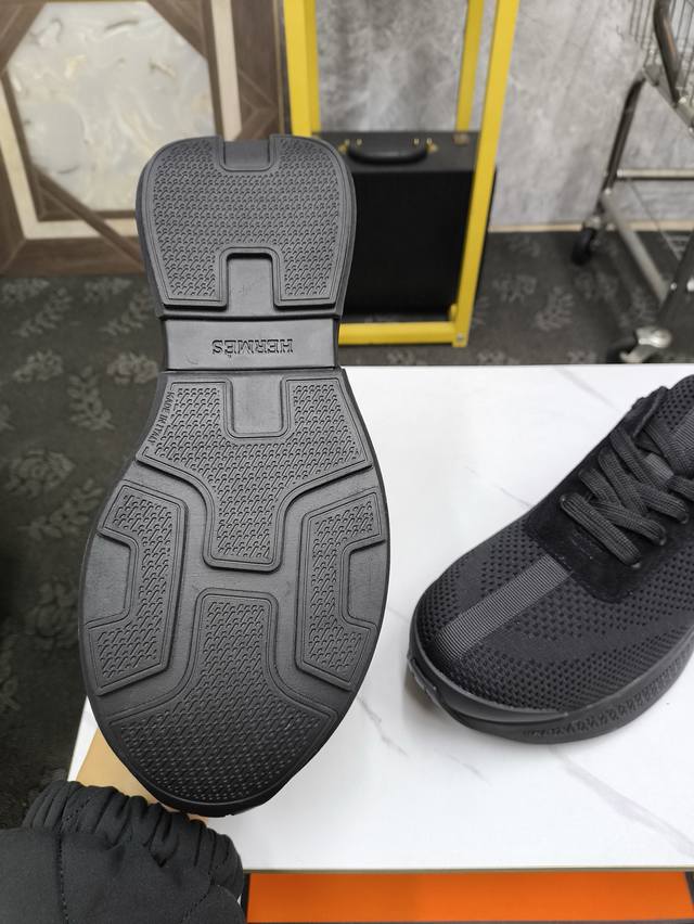 Hermè*爱马仕 官方最新高端男士运动休闲鞋,进口原版飞织透气棉面料,脚感舒适,立体感十足 有眼前一亮的感觉 内里鞋垫均进口小羊皮,脚感柔软舒适 TPU大底
