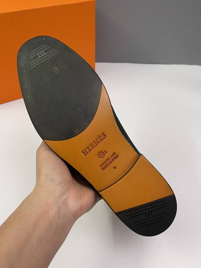 Hermès 爱玛仕男士皮鞋,1:1顶级代购原单品质,鞋面进口牛皮配头层牛皮内里,原版五金,订制原版真皮大底,创造你的亮点从鞋开始,配码38-46 38.45.
