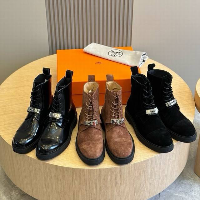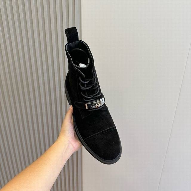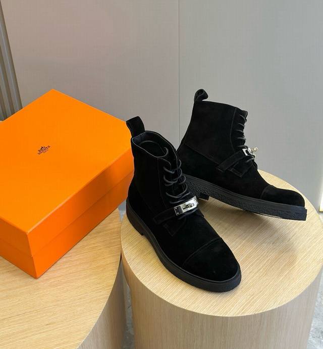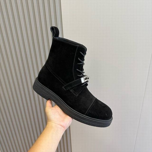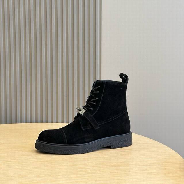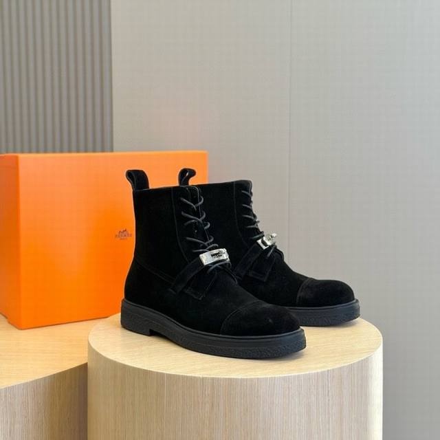 Herme*H家秋冬男士Funk及裸靴-顶 反绒小牛皮及裸靴,搭配功能性镀钯kelly鞋扣和凹槽鞋底。打造不羁的风格 Size:39-44 38.45定制