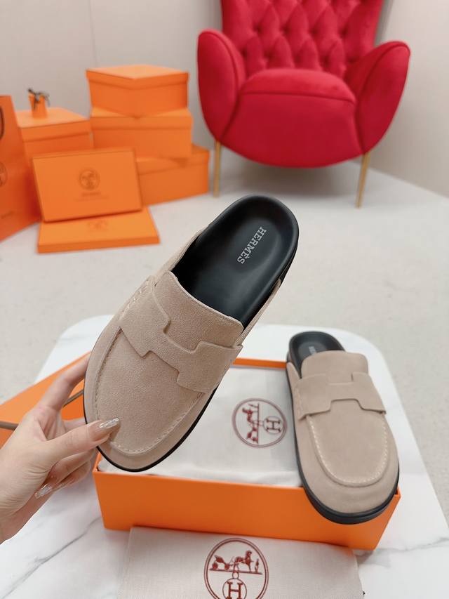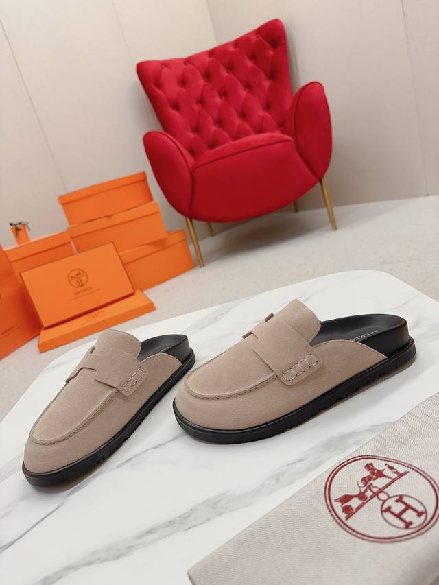 Herme‘S爱仕 最新情侣款 勃肯拖鞋 老舅鞋 泰迪穆勒鞋H拖