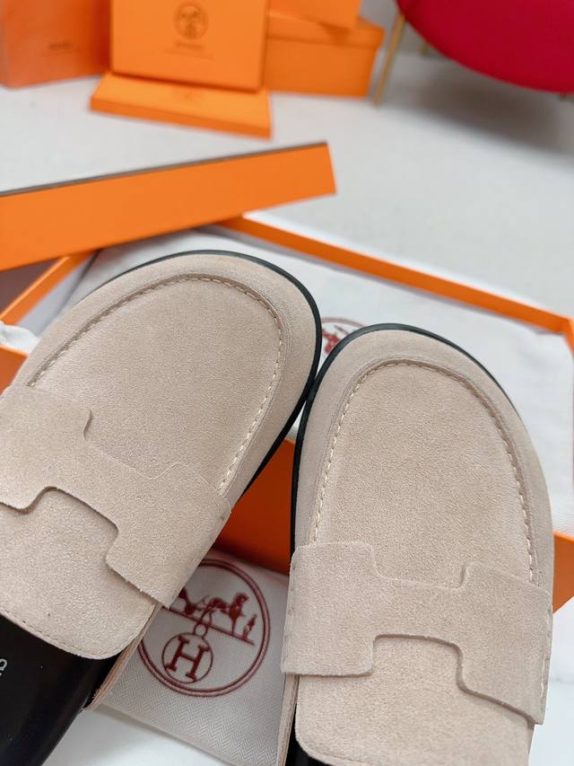 原版购入开发 做货 爱仕Go系列 麂皮山羊皮和羊毛皮穆勒鞋,经典“H”型鞋面细节。打造舒适现代风格 敲可爱的,踩云脚感,光脚或者搭配个袜子穿,都时髦的不行哦 鞋底是原版开模Tpu鞋底 设计简约流畅,打造舒适休闲造型。