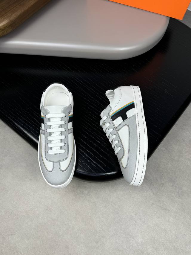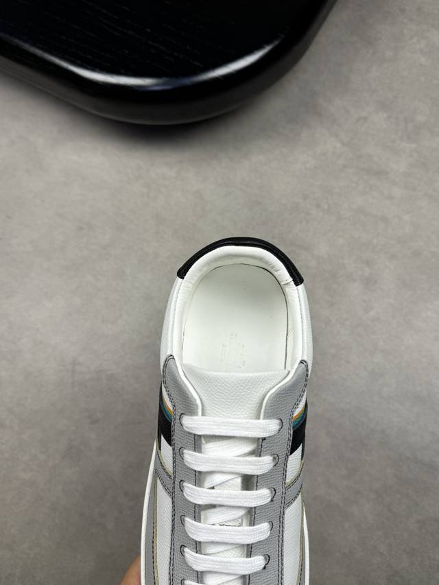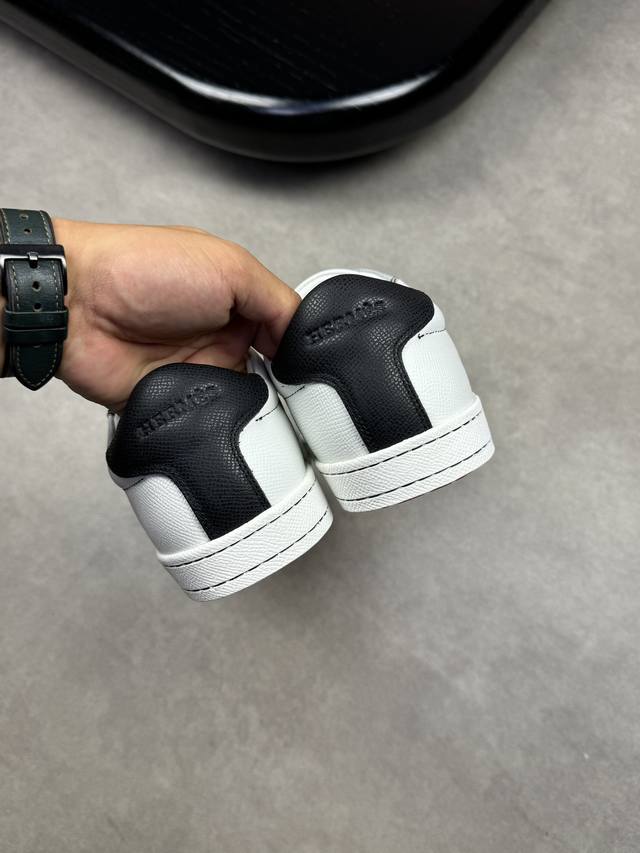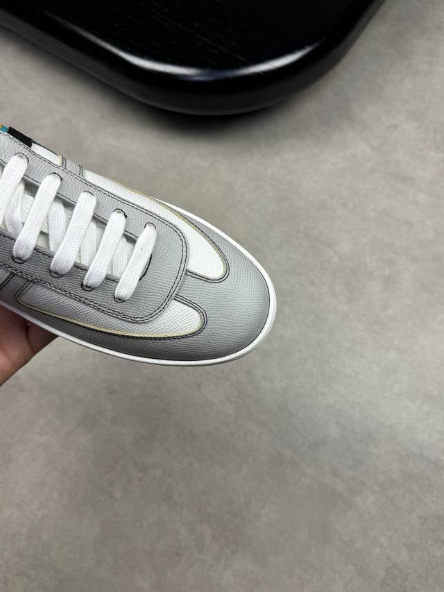 -鞋面:手掌纹小牛皮、鞋身车缝品牌图腾