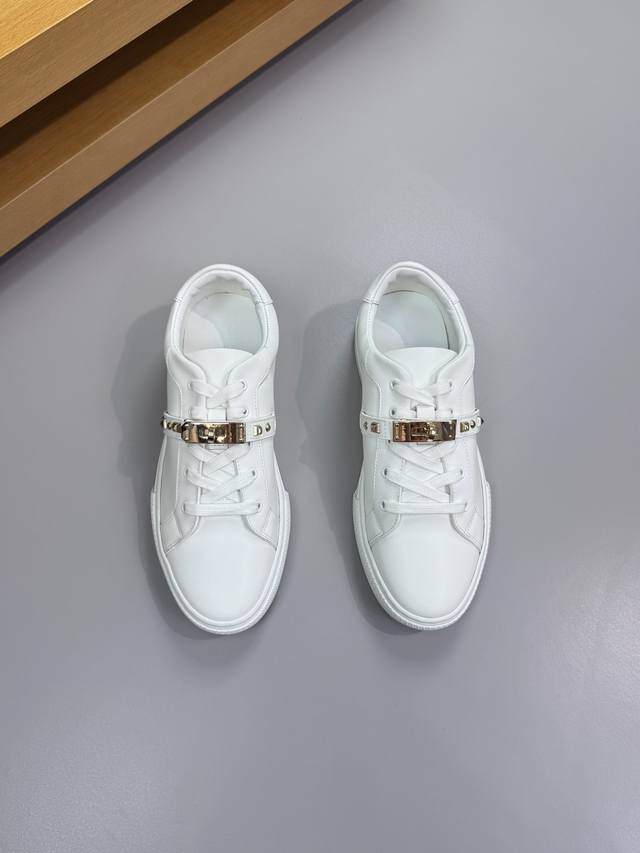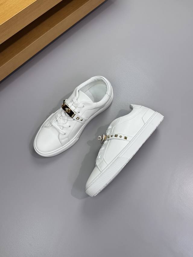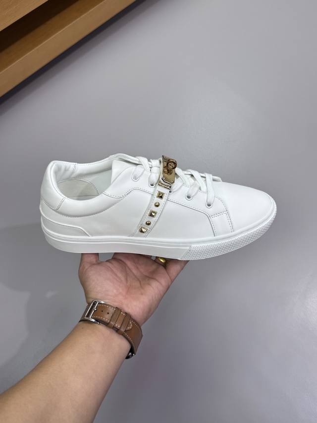 -鞋面:纳帕小牛皮、鞋身彩印品牌图腾、金色.品牌金属扣件装饰