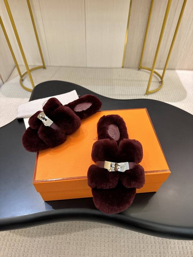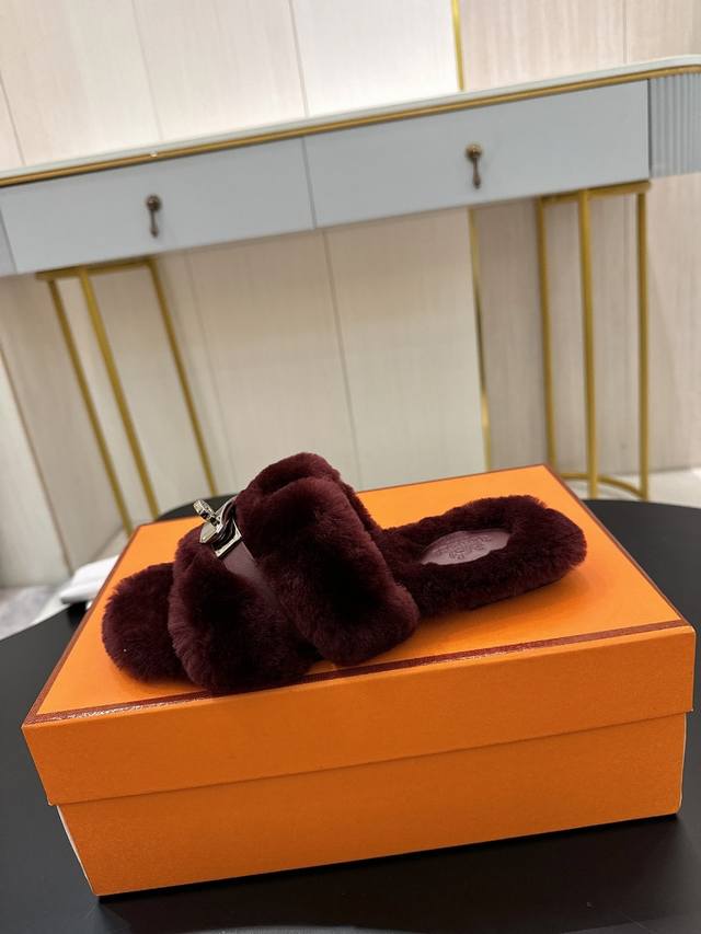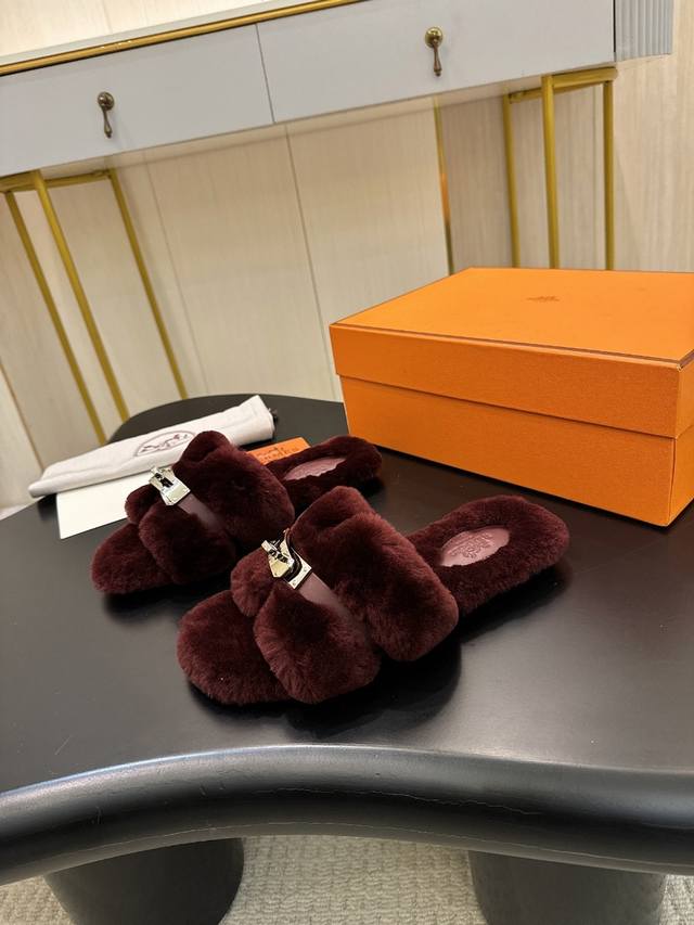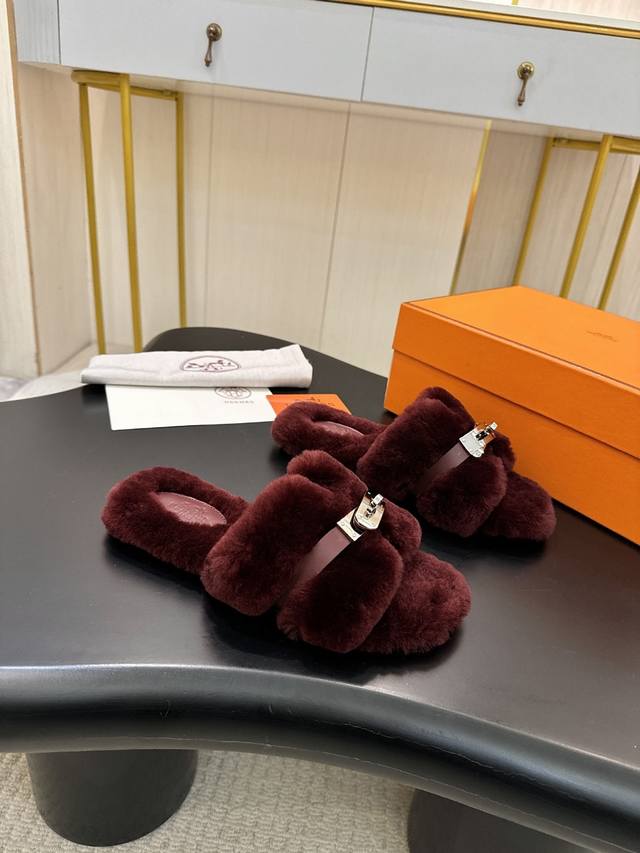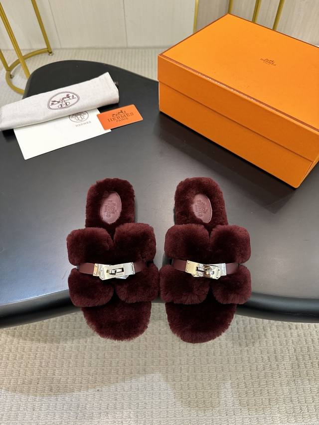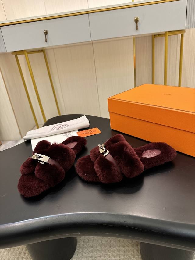 Hermes Fw25 New Arrival~ 爱玛仕秋冬新品H毛拖 皮毛一体拼接羊皮,搭配经典镀钯Kelly扣 设计简约流畅~打造时尚柔美造型!超级美~ 皮