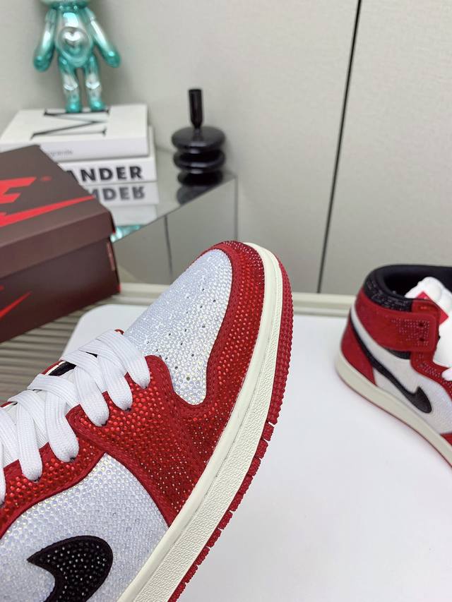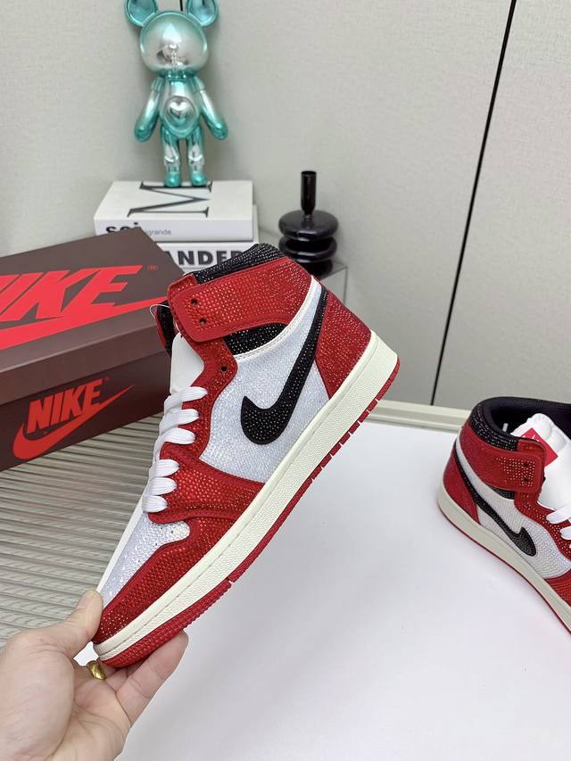 Air Jordan 1 Mid不掉钻的钻鞋,耐克乔一钻石鞋让鞋迷大开眼界,各种意想不到的设计创意,钻石配色方案给大家带来了很多惊喜,隐匿于鞋帮处的钻石颇为独特,低调显示着鞋款的身份。潮人必备的款式,上脚真心好看无法自拔