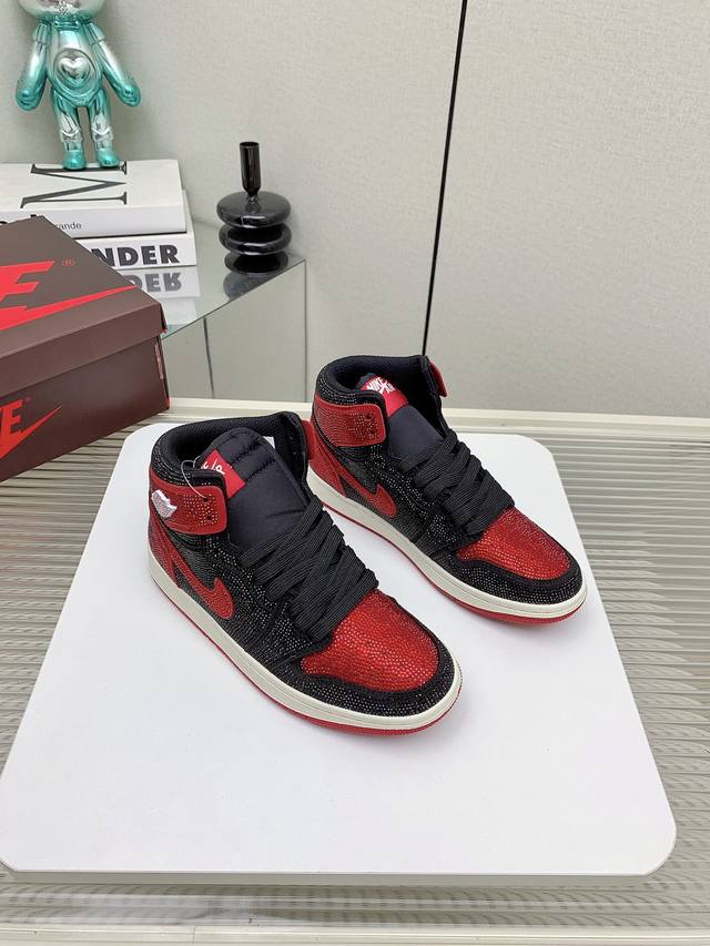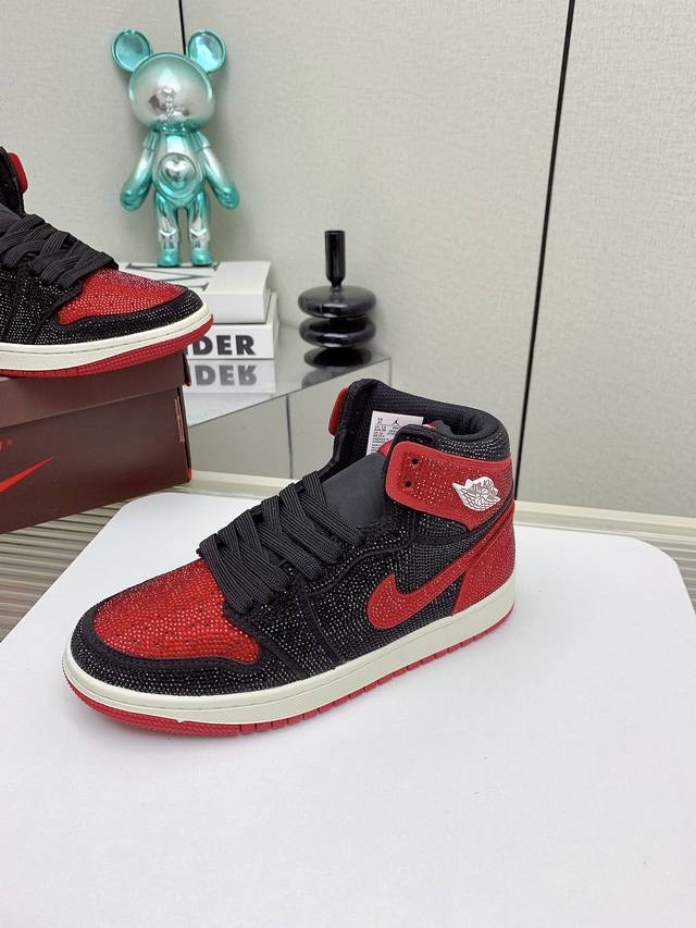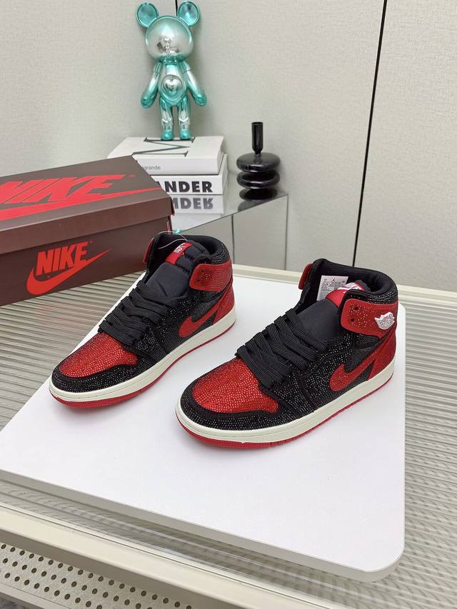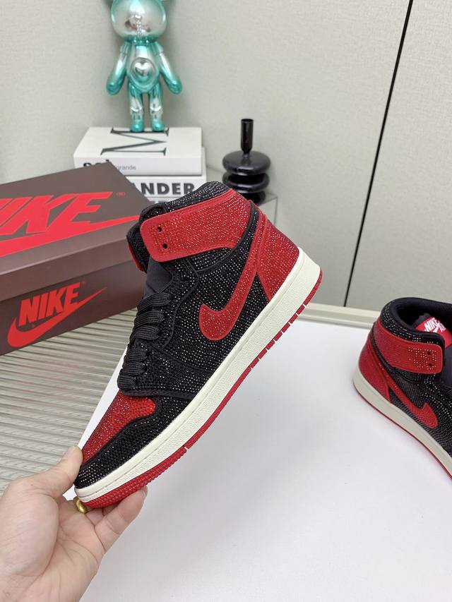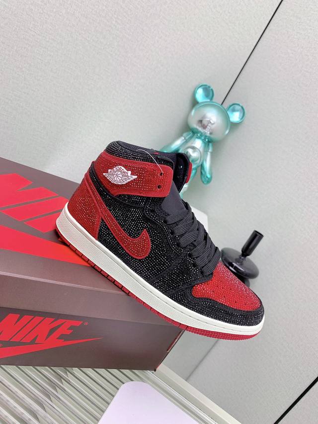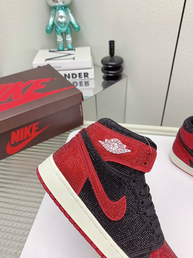 出厂 高版本 Air Jordan 1 Mid不掉钻的钻鞋,耐克乔一钻石鞋让鞋迷大开眼界,各种意想不到的设计创意,钻石配色方案给大家带来了很多惊喜,隐匿于鞋帮处