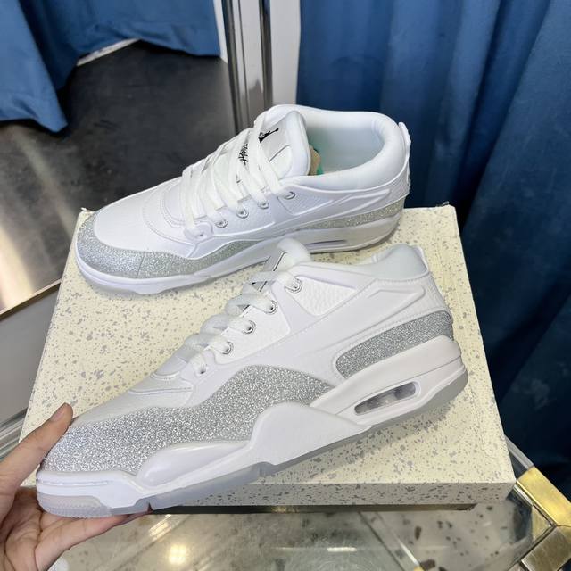 Aj4重置版来了 整体在保留aj4经典造型的同时 我们看到取消了原本的格栅以及tpu框架 而是以一体式固定tpu从鞋身中部一直环绕到后跟位置 材质方面皮革 网布 植绒布均有使用 绿色搭配白色的配色方案 也是百搭不翻车 粗制麂皮的jumpman刺绣鞋舌标签及后跟吸睛的nk Swoosh 彰显鞋款身份 尺码:36-47.5