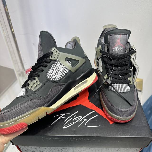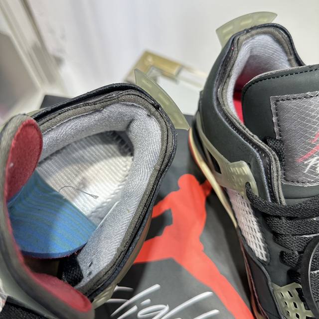 顶级版本 Off-White X Jordan Air Jordan 4 舒适休闲减震防滑耐磨中帮复古篮球鞋 尺码:36-47