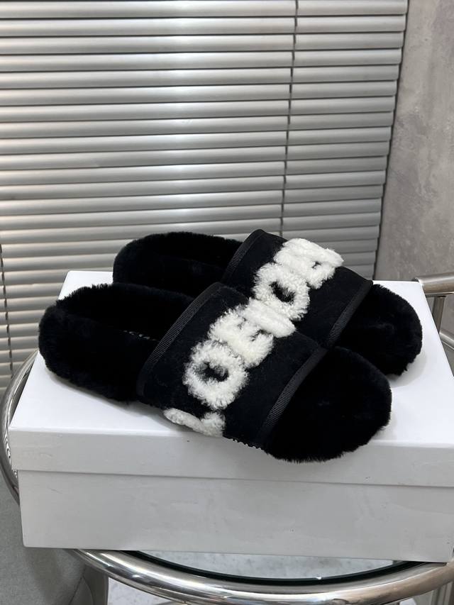 半拖 单鞋 广州货 顶级版本ugg秋冬新款字母刺绣毛毛拖鞋单鞋 雪地靴 油叽叽刺绣logo毛毛鞋,一眼就上头的款式 胖胖的方圆头鞋 加上羊毛边边logo 憨憨的