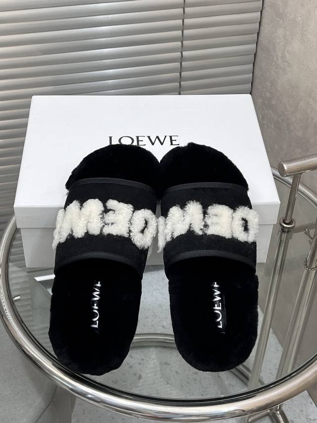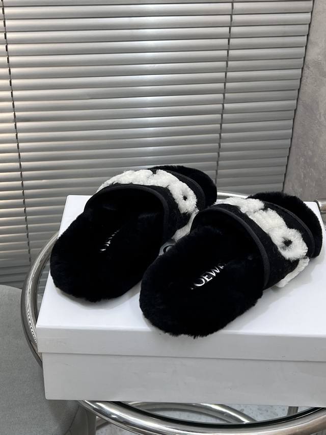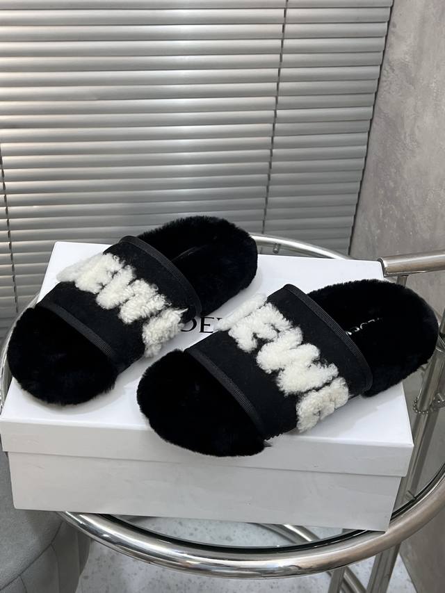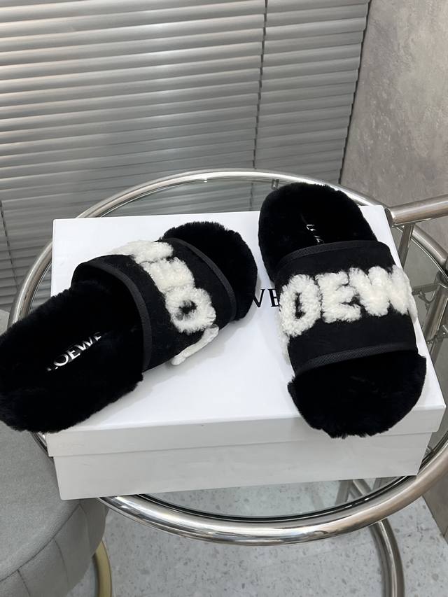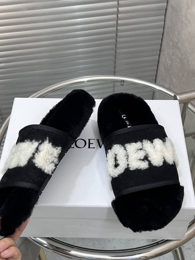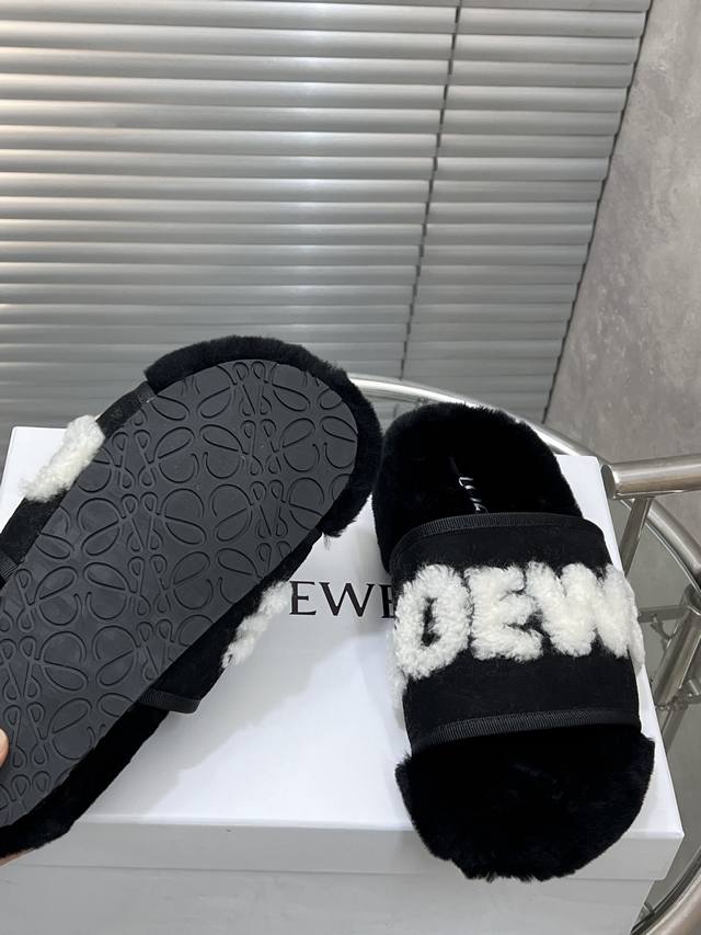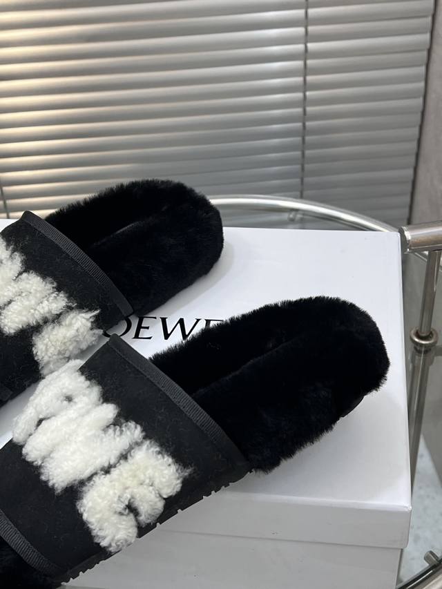 出厂 Loewe 罗意威经典秋冬字母羊毛拖鞋 羊毛是选用欧洲进口A级羊毛 大底:原版一样的Tpu材质、底片耐磨防滑 码数:35-41 40 41定制