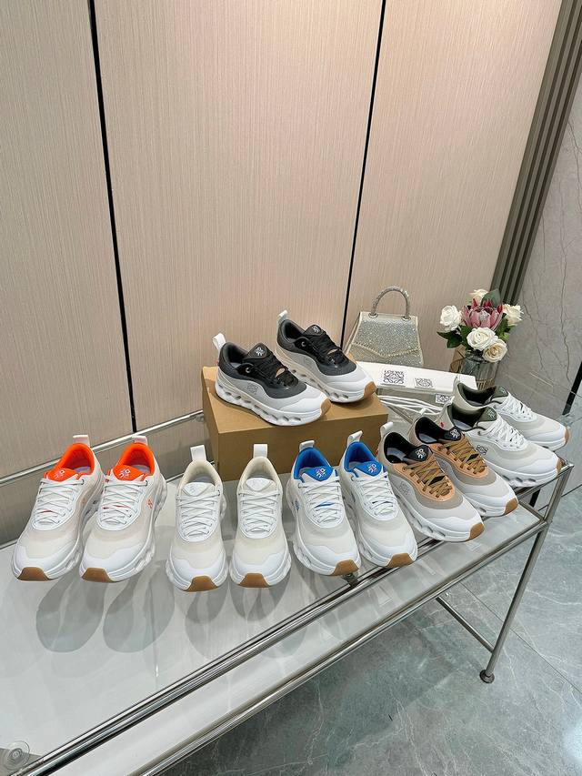 罗意威 Xon 昂跑全新合作系列 时尚,品牌与瑞士高性能运动品牌On携手打造的此系列作品专为城市与户外生活而设,充分彰显蕴含可持续理念的科技品质。由再生聚酯纤维和网眼布制成,采用独家鞋底,鞋侧印有Loewe罗意威经典Logo,饰有全覆盖贴缝细节。此次合作,将On昂跑专业技术和Loewe罗意威的精湛工艺结合,运用在的制作和设计中,专为城市生活和户外运动打造。